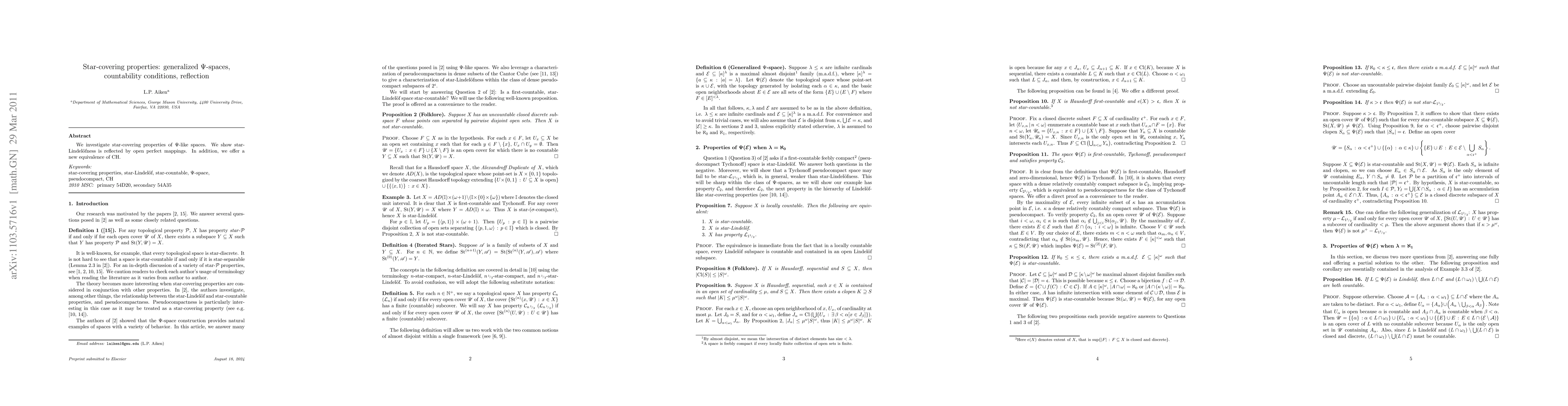 We investigate star-covering properties of $\Psi$-like spaces. We show star-Lindel\"ofness is reflected by open perfect mappings. In addition, we offer a new equivalence of CH.