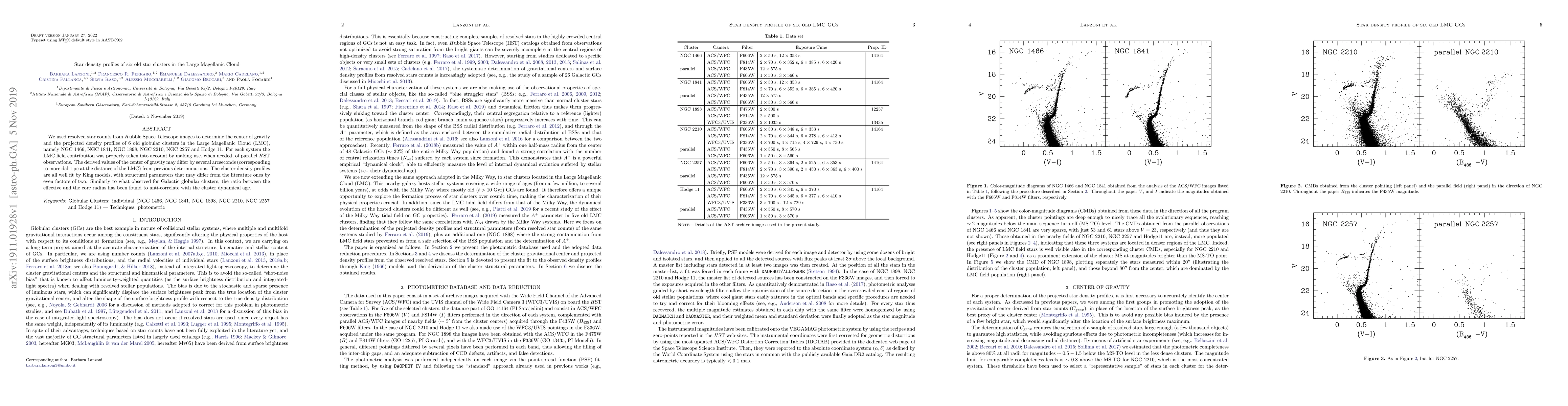 Researchers used Hubble Space Telescope images to study 6 old star clusters in the Large Magellanic Cloud, finding that their center of gravity and density profiles differ from previous estimates, with some requiring adjustments to traditional King models.