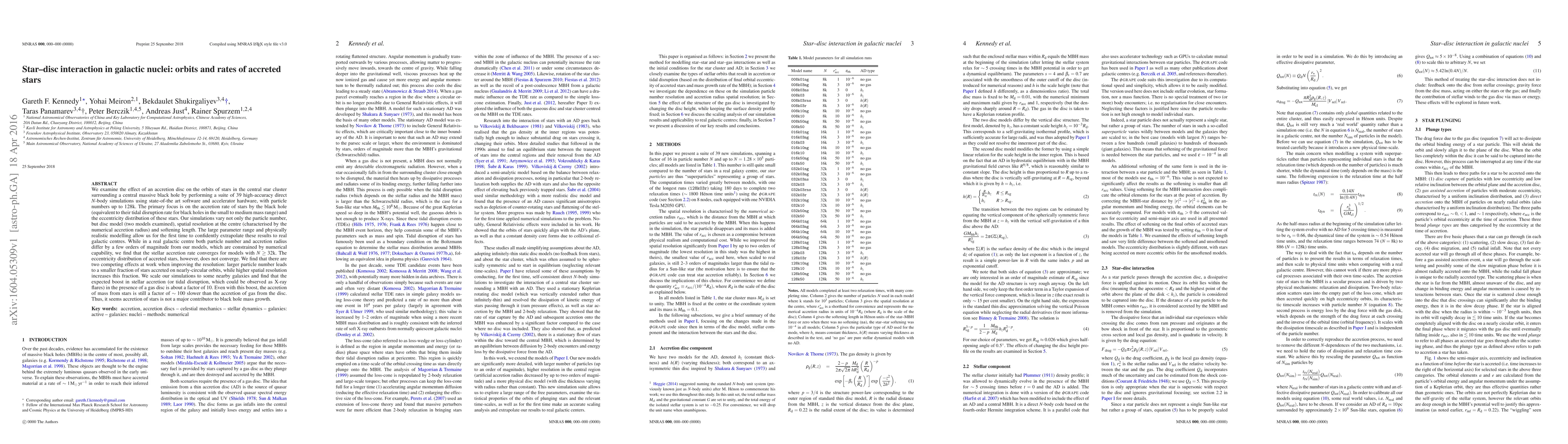 We examine the effect of an accretion disc on the orbits of stars in the central star cluster surrounding a central massive black hole by performing a suite of 39 high-accuracy direct N-body simulations using state-of-the art software and accelerator hardware, with particle numbers up to 128k. The primary focus is on the accretion rate of stars by the black hole (equivalent to their tidal disruption rate for black holes in the small to medium mass range) and the eccentricity distribution of these stars. Our simulations vary not only the particle number, but disc model (two models examined), spatial resolution at the centre (characterised by the numerical accretion radius) and softening length. The large parameter range and physically realistic modelling allow us for the first time to confidently extrapolate these results to real galactic centres. While in a real galactic centre both particle number and accretion radius differ by a few orders of magnitude from our models, which are constrained by numerical capability, we find that the stellar accretion rate converges for models with N > 32k. The eccentricity distribution of accreted stars, however, does not converge. We find that there are two competing effects at work when improving the resolution: larger particle number leads to a smaller fraction of stars accreted on nearly-circular orbits, while higher spatial resolution increases this fraction. We scale our simulations to some nearby galaxies and find that the expected boost in stellar accretion (or tidal disruption, which could be observed as X-ray flares) in the presence of a gas disc is about a factor of 10. Even with this boost, the accretion of mass from stars is still a factor of ~ 100 slower than the accretion of gas from the disc. Thus, it seems accretion of stars is not a major contributor to black hole mass growth.