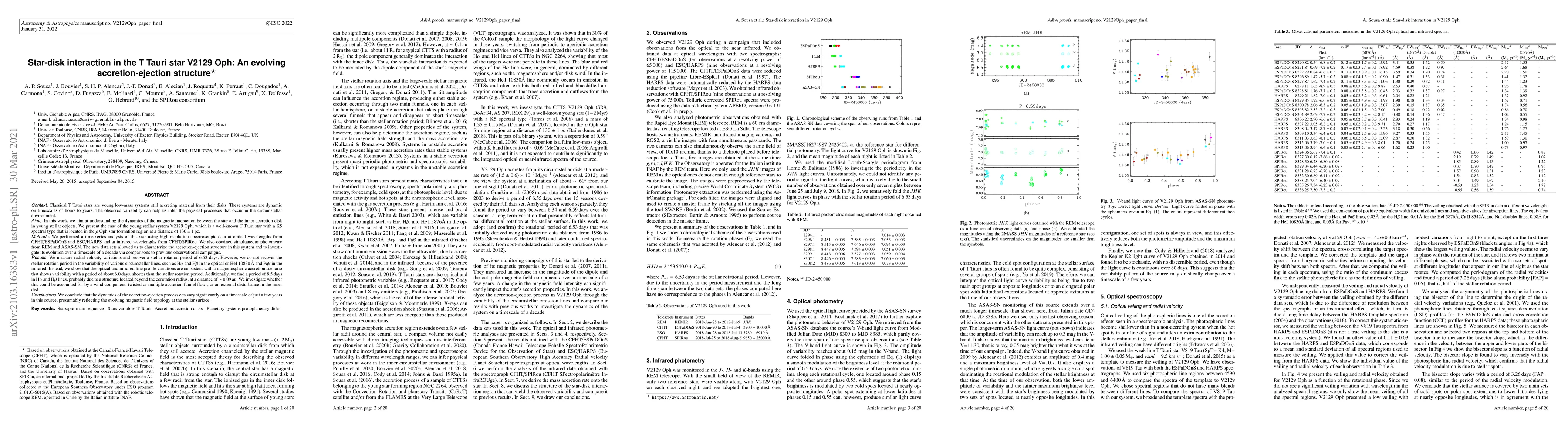 This study analyzes the star-disk interaction in the T Tauri star V2129 Oph, revealing complex accretion-ejection dynamics. High-resolution spectroscopic data show variability in circumstellar lines, indicating a magnetospheric accretion scenario with a period shorter than the star's rotation, suggesting significant changes in the accretion-ejection process over a few years.