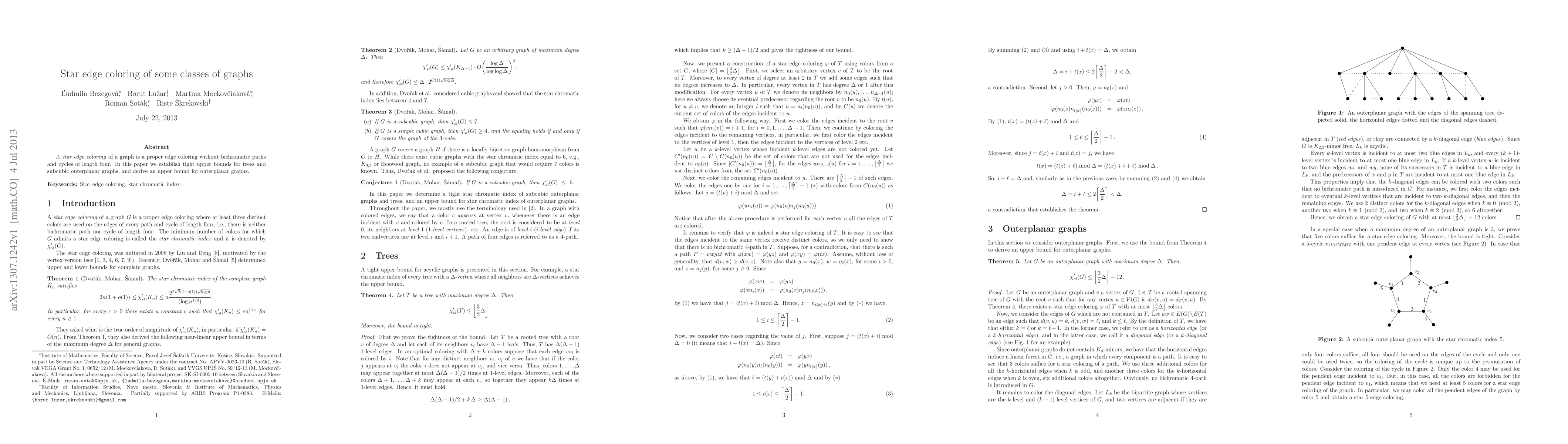 This paper investigates star edge coloring in various graph classes, establishing tight upper bounds for trees and subcubic outerplanar graphs, and providing an upper bound for outerplanar graphs. Star edge coloring aims to properly color the edges without forming bichromatic paths or cycles of length four.