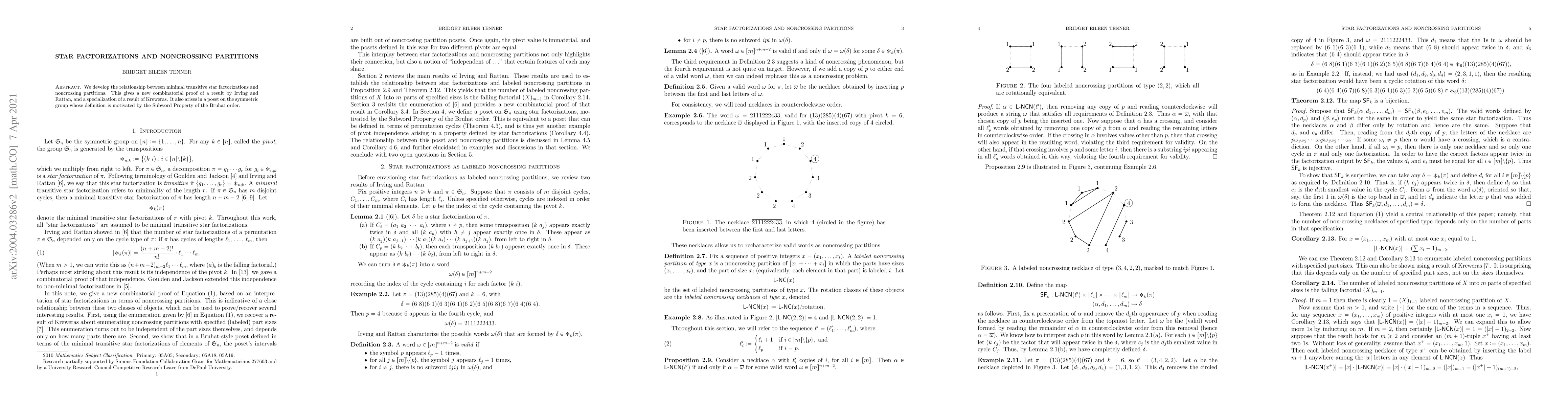 This paper explores the connection between minimal transitive star factorizations and noncrossing partitions, providing a new combinatorial proof of a result by Irving and Rattan and a specialized version of Kreweras's theorem. It also introduces a poset on the symmetric group linked to the Subword Property of the Bruhat order.