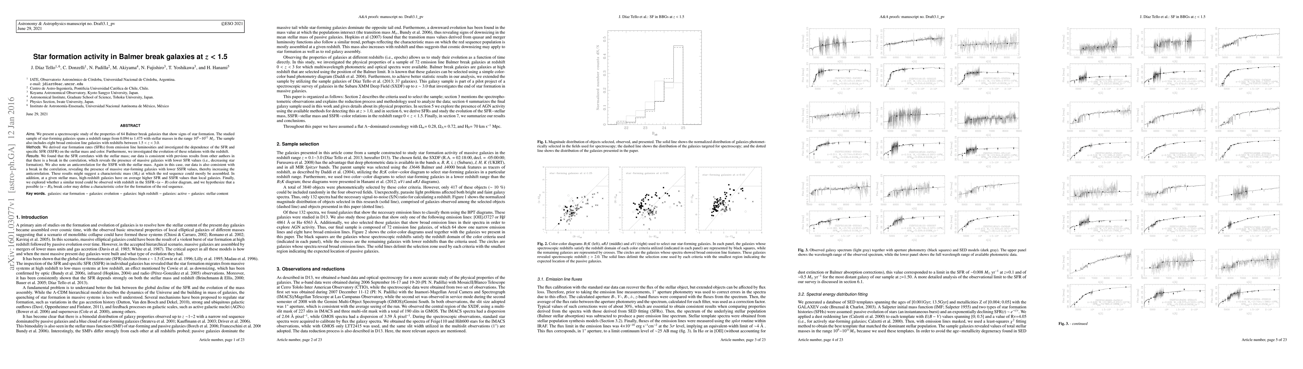 This study investigates the star formation activity in 64 Balmer break galaxies with star formation signs across a redshift range of 0.094 to 1.475. The findings reveal a correlation between star formation rates and stellar mass, with a notable "break" indicating a decrease in star formation in massive galaxies. Additionally, high-redshift galaxies exhibit higher star formation rates and specific star formation rates compared to local galaxies.