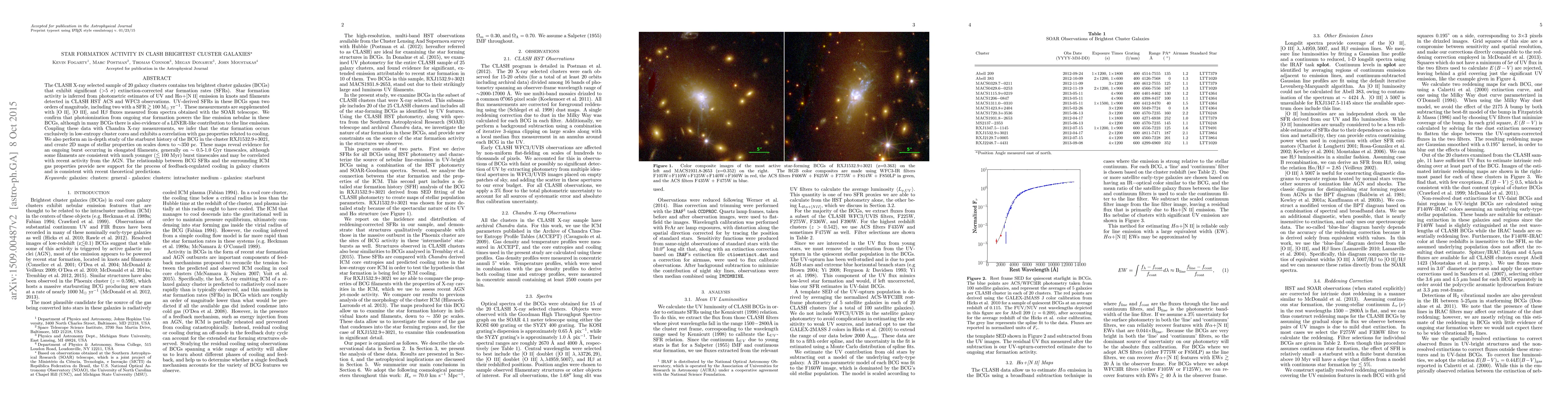This paper investigates star formation activity in the brightest cluster galaxies of 20 galaxy clusters from the CLASH sample, revealing significant star formation in ten BCGs. The study uses UV and H$\alpha$+[\ion{N}{2}] emission data to infer star formation rates, finding a correlation with gas cooling properties in low-entropy cluster cores.