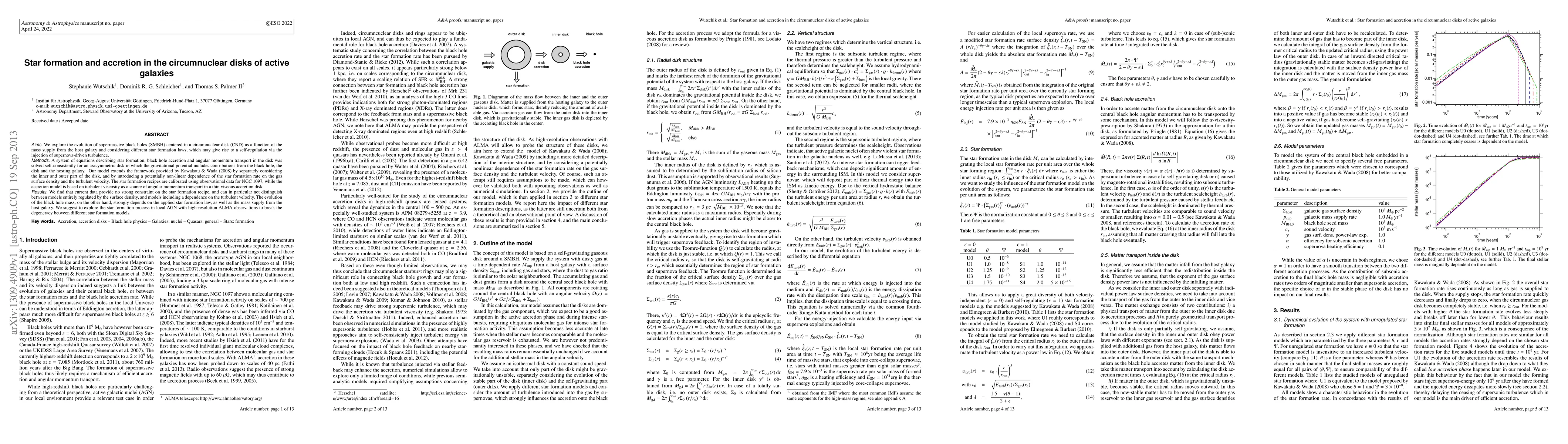 We explore the evolution of supermassive black holes (SMBH) centered in a circumnuclear disk (CND) as a function of the mass supply from the host galaxy and considering different star formation laws, which may give rise to a self-regulation via the injection of supernova-driven turbulence. A system of equations describing star formation, black hole accretion and angular momentum transport was solved for an axisymmetric disk in which the gravitational potential includes contributions from the black hole, the disk and the hosting galaxy. Our model extends the framework provided by Kawakatu et al. (2008) by separately considering the inner and outer part of the disk, and by introducing a potentially non-linear dependence of the star formation rate on the gas surface density and the turbulent velocity. The star formation recipes are calibrated using observational data for NGC 1097, while the accretion model is based on turbulent viscosity as a source of angular momentum transport in a thin viscous accretion disk. We find that current data provide no strong constraint on the star formation recipe, and can in particular not distinguish between models entirely regulated by the surface density, and models including a dependence on the turbulent velocity. The evolution of the black hole mass, on the other hand, strongly depends on the applied star formation law, as well as the mass supply from the host galaxy. We suggest to explore the star formation process in local AGN with high-resolution ALMA observations to break the degeneracy between different star formation models.