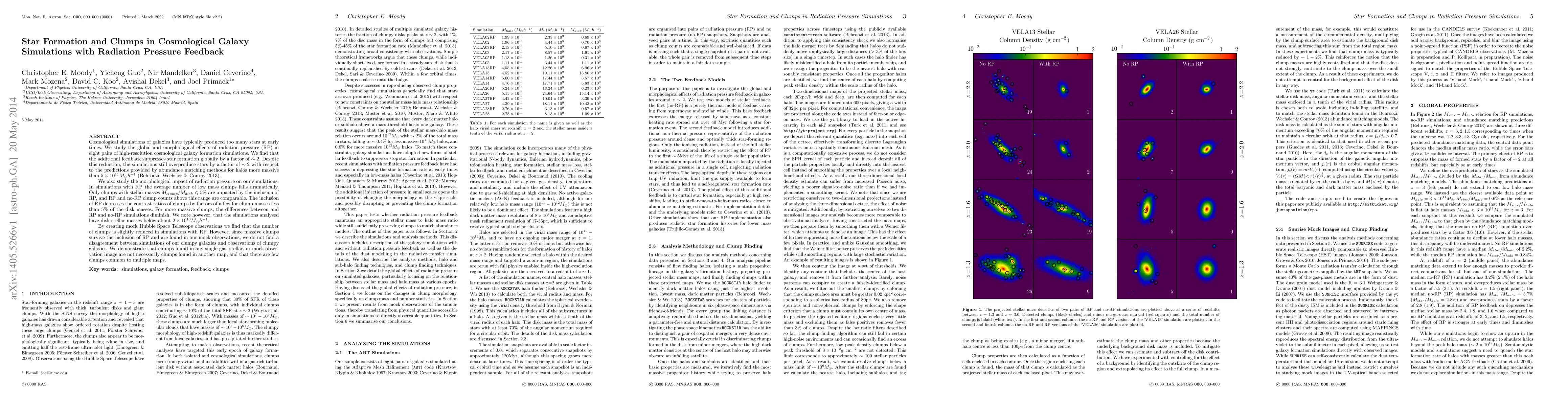 Cosmological simulations of galaxies have typically produced too many stars at early times. We study the global and morphological effects of radiation pressure (RP) in eight pairs of high-resolution cosmological galaxy formation simulations. We find that the additional feedback suppresses star formation globally by a factor of ~2. Despite this reduction, the simulations still overproduce stars by a factor of ~2 with respect to the predictions provided by abundance matching methods for halos more massive than 5E11 Msun/h (Behroozi, Wechsler & Conroy 2013). We also study the morphological impact of radiation pressure on our simulations. In simulations with RP the average number of low mass clumps falls dramatically. Only clumps with stellar masses Mclump/Mdisk <= 5% are impacted by the inclusion of RP, and RP and no-RP clump counts above this range are comparable. The inclusion of RP depresses the contrast ratios of clumps by factors of a few for clump masses less than 5% of the disk masses. For more massive clumps, the differences between and RP and no-RP simulations diminish. We note however, that the simulations analyzed have disk stellar masses below about 2E10 Msun/h. By creating mock Hubble Space Telescope observations we find that the number of clumps is slightly reduced in simulations with RP. However, since massive clumps survive the inclusion of RP and are found in our mock observations, we do not find a disagreement between simulations of our clumpy galaxies and observations of clumpy galaxies. We demonstrate that clumps found in any single gas, stellar, or mock observation image are not necessarily clumps found in another map, and that there are few clumps common to multiple maps.