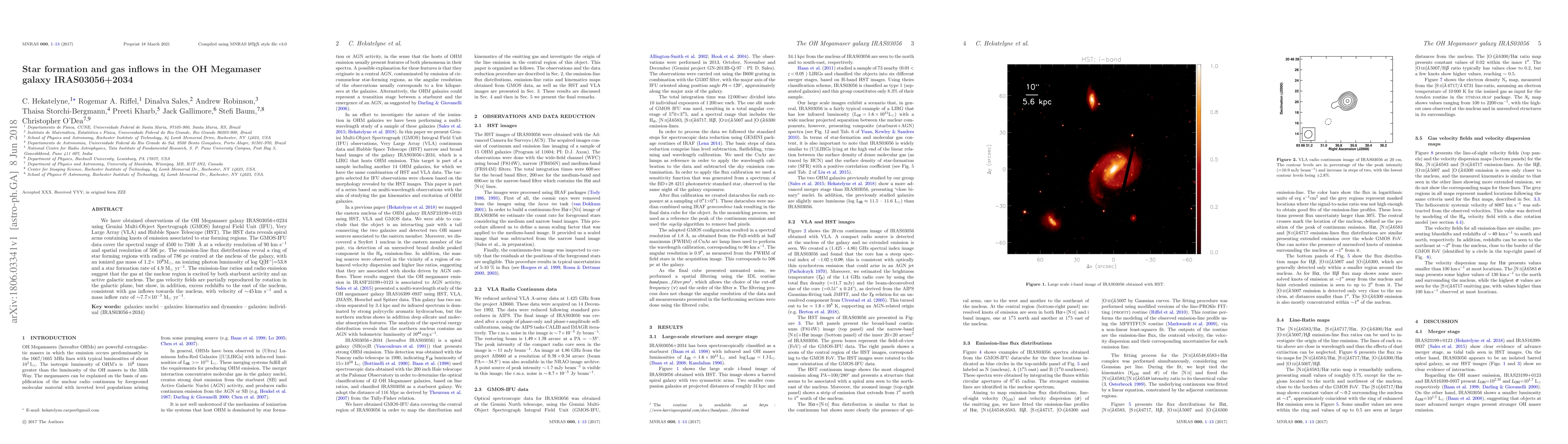 We have obtained observations of the OH Megamaser galaxy IRAS03056+0234 using Gemini Multi-Object Spectrograph (GMOS) Integral Field Unit (IFU), Very Large Array (VLA) and Hubble Space Telescope (HST). The HST data reveals spiral arms containing knots of emission associated to star forming regions. The GMOS-IFU data cover the spectral range of 4500 to 7500 \AA\ at a velocity resolution of 90 km s$^{-1}$ and spatial resolution of 506 pc. The emission-line flux distributions reveal a ring of star forming regions with radius of 786 pc centred at the nucleus of the galaxy, with an ionized gas mass of 1.2$\times$ 10$^{8}$M$_{\odot}$, an ionizing photon luminosity of log Q[H$^{+}$]=53.8 and a star formation rate of 4.9 M$_{\odot}$ yr$^{-1}$. The emission-line ratios and radio emission suggest that the gas at the nuclear region is excited by both starburst activity and an active galactic nucleus. The gas velocity fields are partially reproduced by rotation in the galactic plane, but show, in addition, excess redshifts to the east of the nucleus, consistent with gas inflows towards the nucleus, with velocity of $\sim$45 km s$^{-1}$ and a mass inflow rate of $\sim$7.7$\times$10$^{-3}$ M$_{\odot}$ yr$^{-1}$.