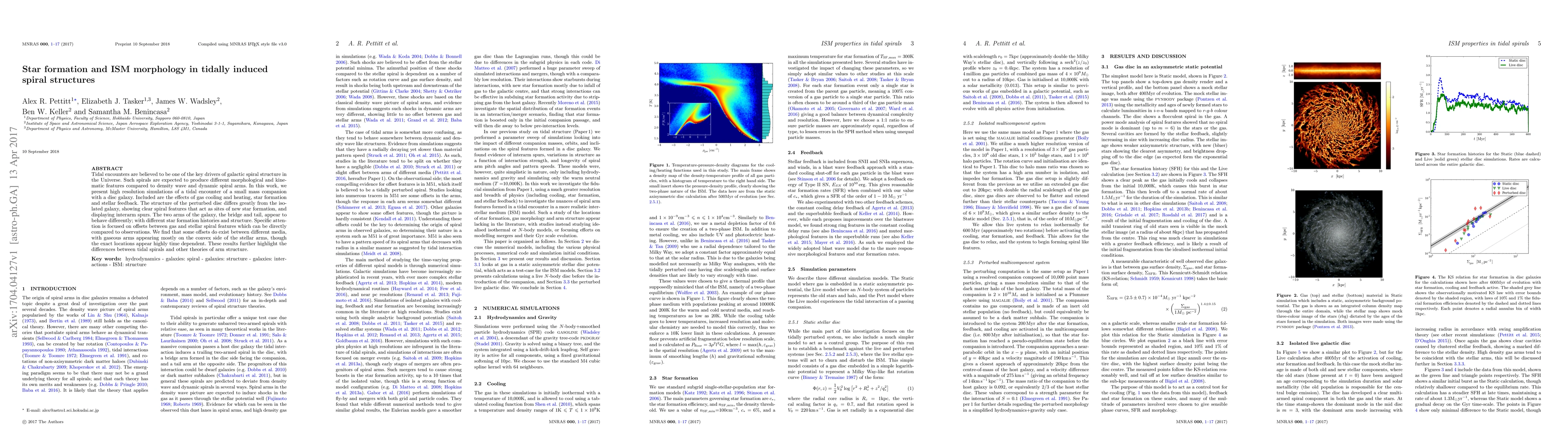 High-resolution simulations show that tidal encounters in galaxy discs create spiral structures with distinct star formation patterns, including arm spurs and offsets between gas and stellar features, differing from other theories of galactic structure.