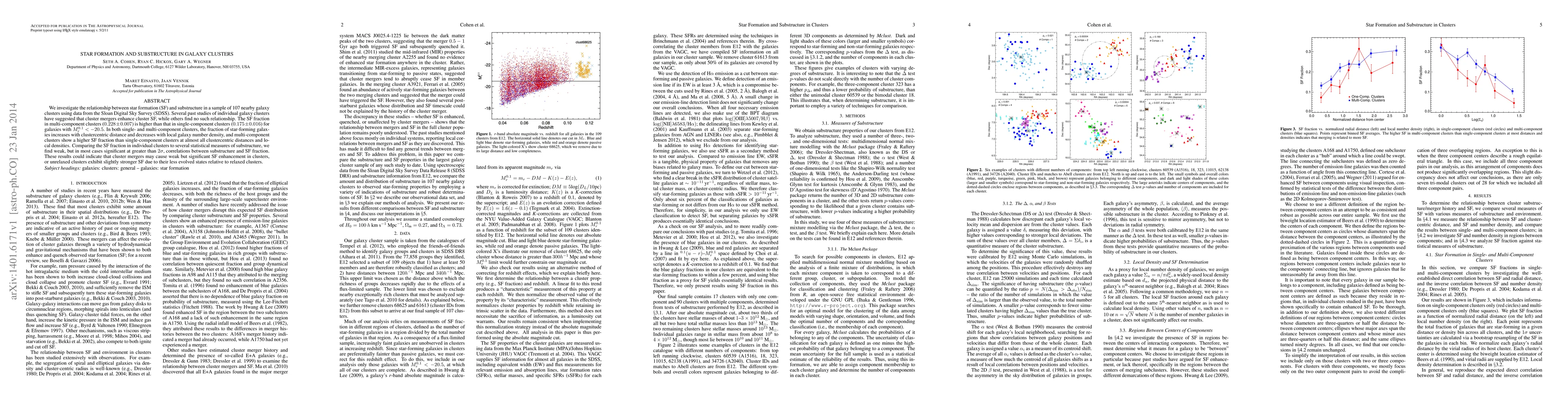 This study finds that star formation (SF) is higher in multi-component galaxy clusters compared to single-component clusters, suggesting a potential link between cluster mergers and enhanced SF. The SF fraction correlates weakly with cluster substructure, indicating that unrelaxed clusters may exhibit slightly stronger SF due to their less evolved states.