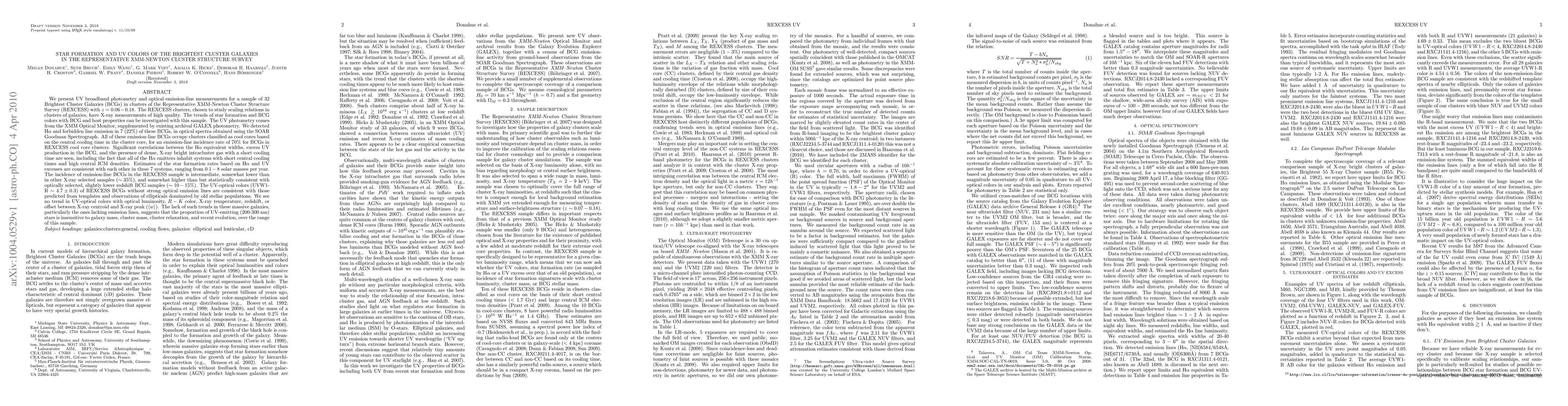 the H\alpha equivalent widths, excess UV production in the BCG, and the