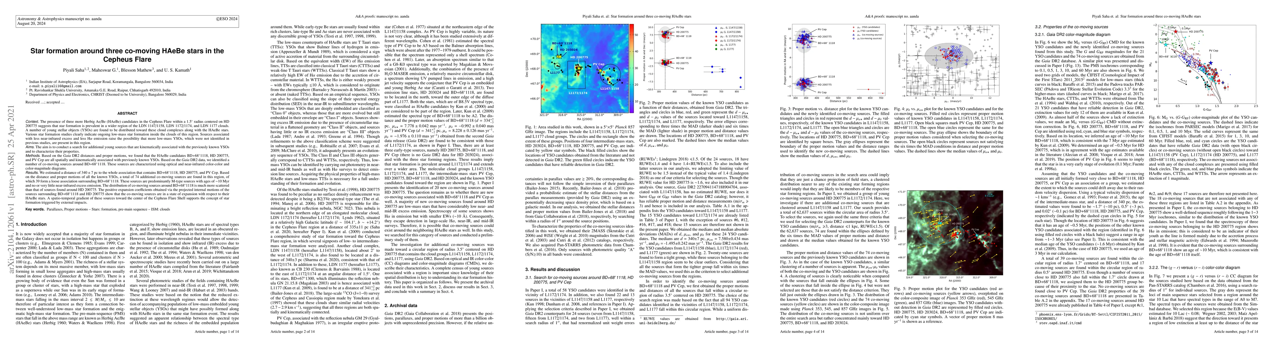 This study identifies three co-moving HAeBe stars in the Cepheus Flare, revealing ongoing low-mass star formation in the LDN clouds. Using Gaia DR2 data, 74 additional co-moving, predominantly M-type young stellar objects were found, suggesting triggered star formation by external impacts.