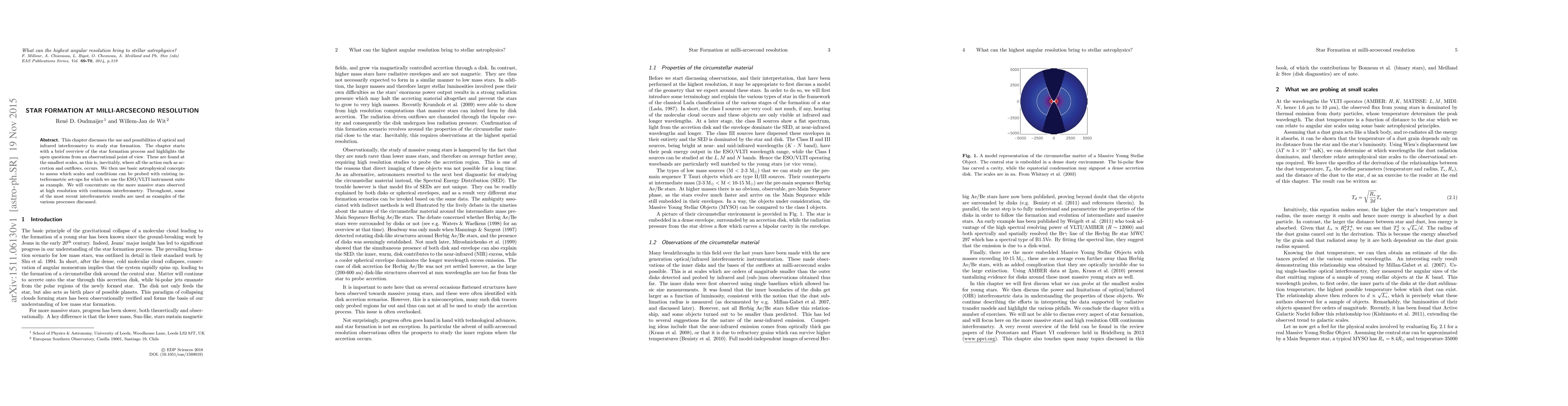 This paper explores the use of optical and infrared interferometry to study star formation at high resolution, focusing on the smallest scales where accretion and outflows occur. It assesses which scales and conditions can be probed with existing equipment and highlights recent results from continuum interferometry for massive stars.