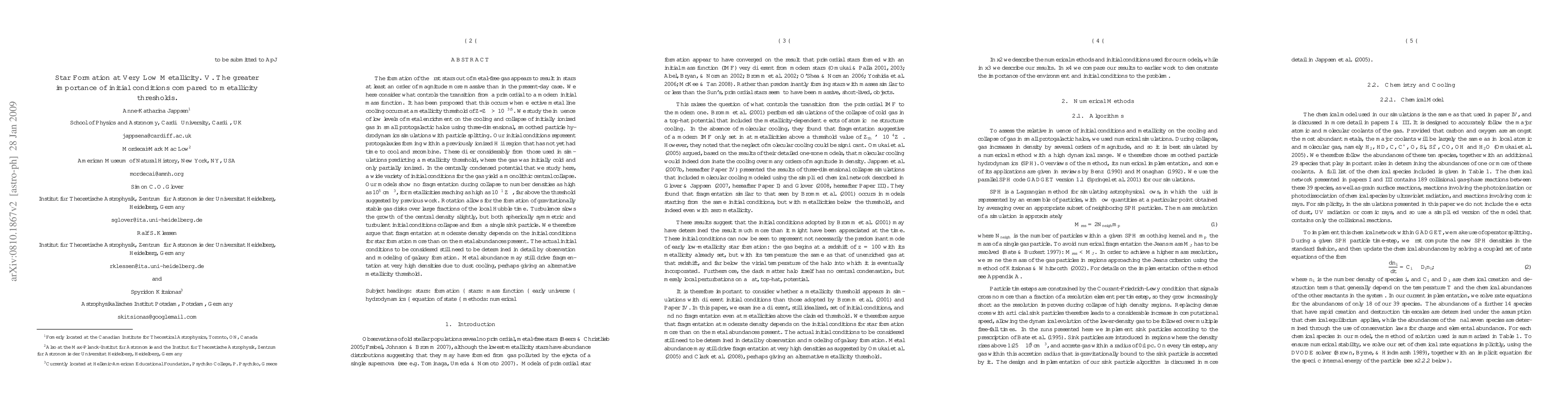 This paper explores the formation of the first stars in metal-free gas, finding that initial conditions, such as gas ionization and rotation, play a greater role in the transition to modern star formation than previously proposed metallicity thresholds. The study shows that even high levels of metal enrichment do not lead to fragmentation, suggesting initial conditions are more critical for star formation outcomes.
