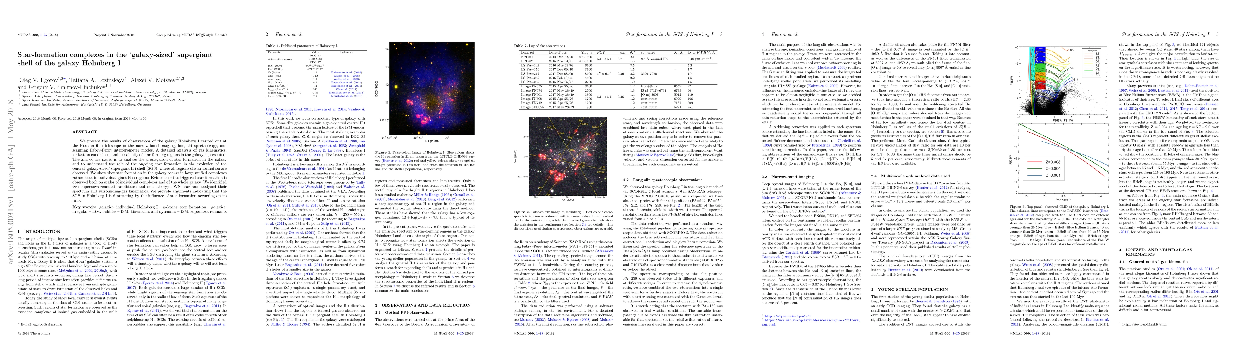 This paper investigates star-formation complexes in Holmberg I using advanced telescopic observations, revealing that star formation occurs in large, unified complexes rather than isolated regions. The study finds evidence of triggered star formation and suggests that the central supergiant HI shell is being destroyed by star formation on its rims.