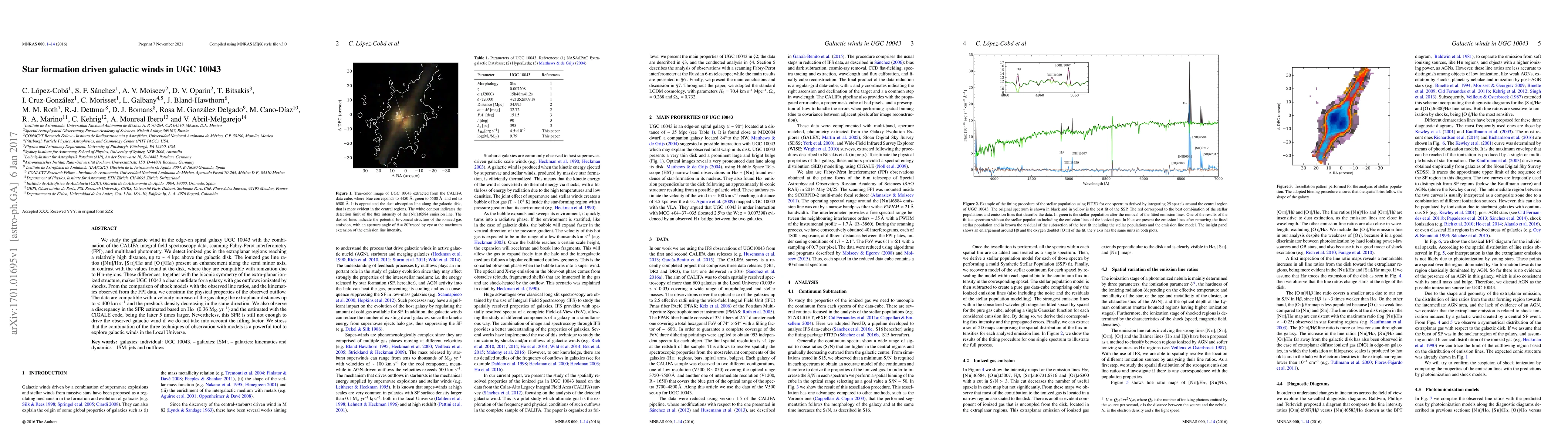 This paper studies a galaxy with galactic winds driven by star formation, detecting ionized gas up to 4 kpc above the disk, and constrains physical properties of the outflow through modeling and observations.