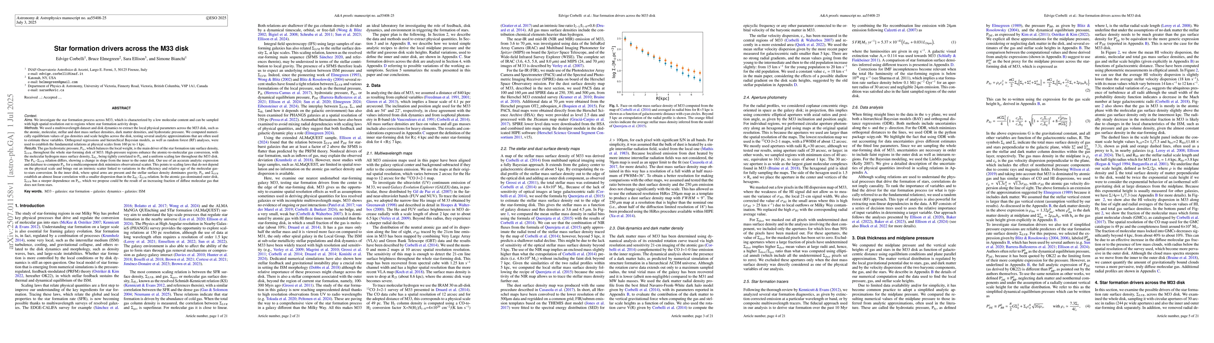 The paper presents a comprehensive analysis of star formation drivers using advanced statistical methods (random forest, orthogonal regression, hierarchical Bayesian models) and multiwavelength data, providing detailed scaling laws for pressure and SFR surface density in M33.
