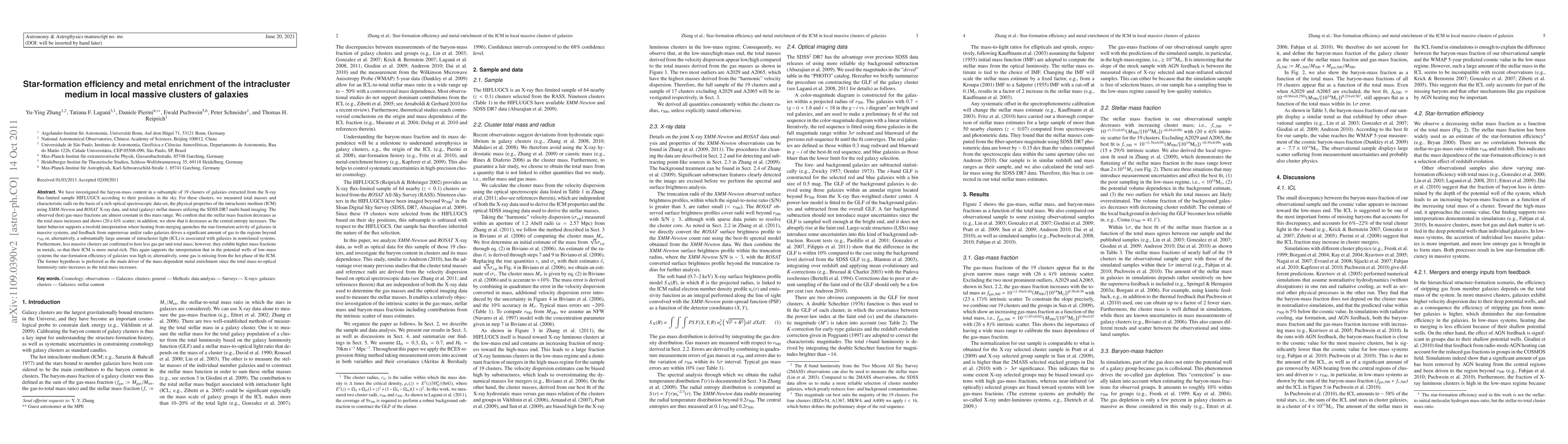 The study finds that massive galaxy clusters have less gas per unit mass, leading to lower star-formation efficiency and higher metal enrichment in their intracluster medium.