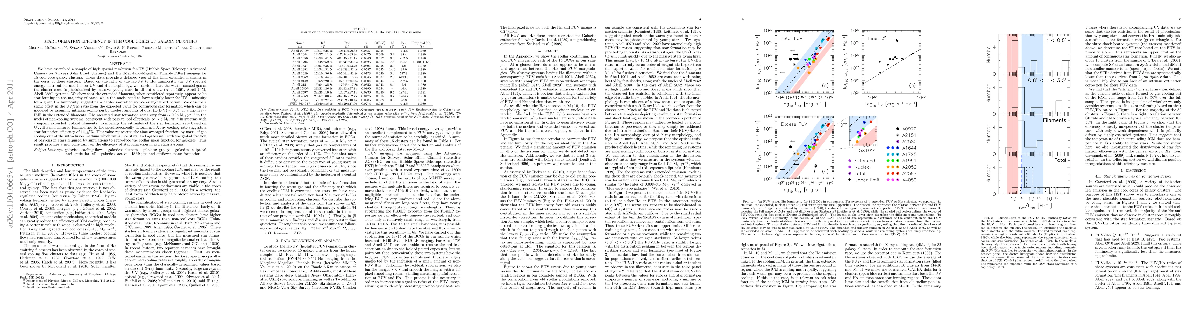 This study uses high-resolution imaging to analyze star formation in cool core galaxy clusters, finding that star formation is driven by young stars in most clusters. The star formation efficiency is estimated at 14% (±18% to ±8%), aligning with the fraction of baryons in stars needed to match galaxy stellar mass functions.