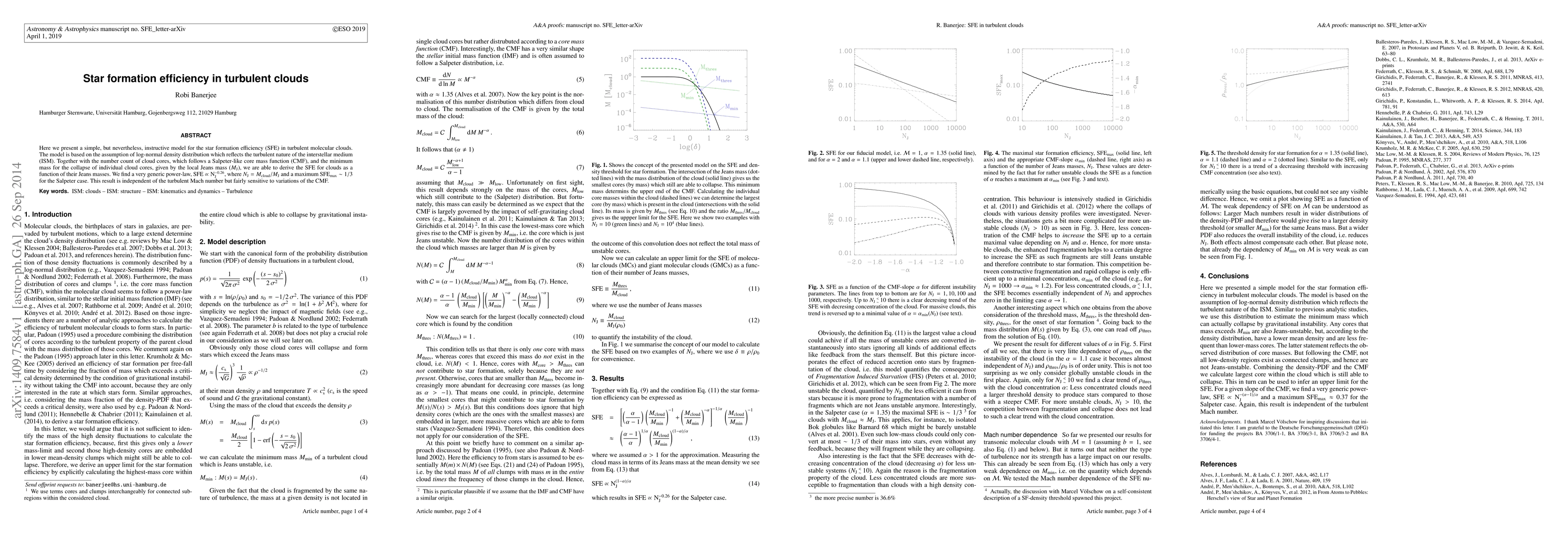 This study develops a model for star formation efficiency in turbulent clouds, finding that it decreases with cloud mass but reaches a maximum of about 1/3 for certain mass functions.