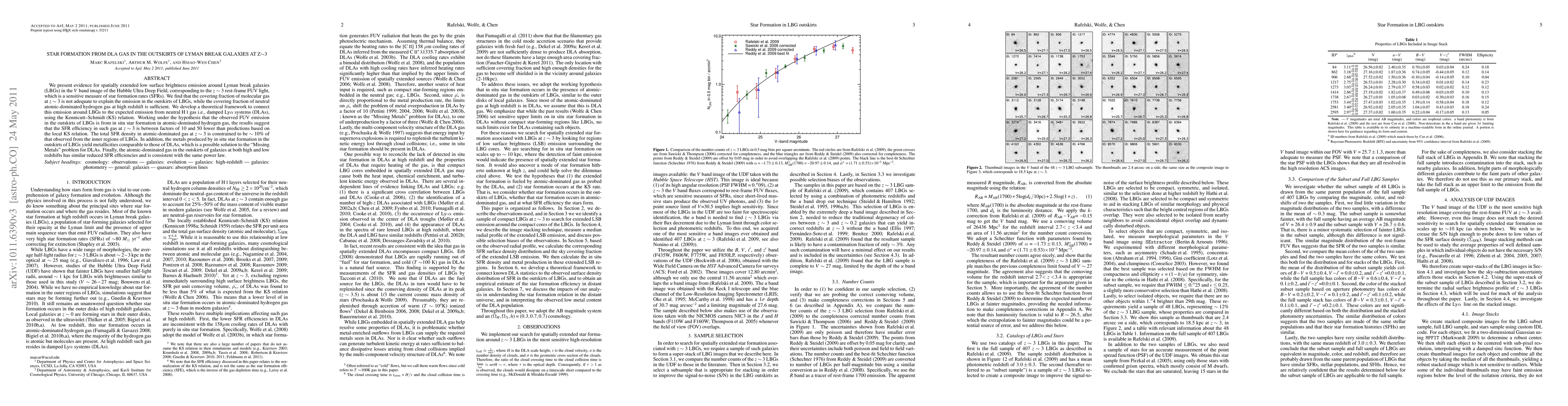 Research finds that star formation in the outskirts of Lyman Break Galaxies at z~3 is coming from atomic-dominated hydrogen gas, with a lower efficiency than predicted, and yields metallicities comparable to Damped Lyman Alpha Systems.