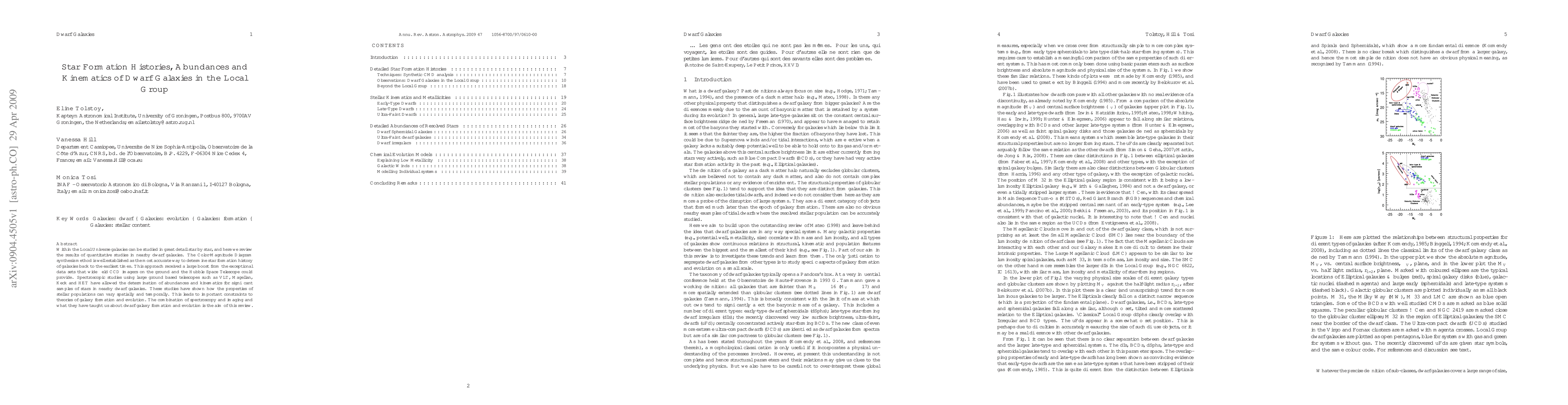 This paper reviews quantitative studies on the star formation histories, abundances, and kinematics of nearby dwarf galaxies in the Local Group using advanced imaging and spectroscopic techniques. Findings highlight the spatial and temporal variations in stellar populations, providing crucial insights into galaxy formation and evolution theories.
