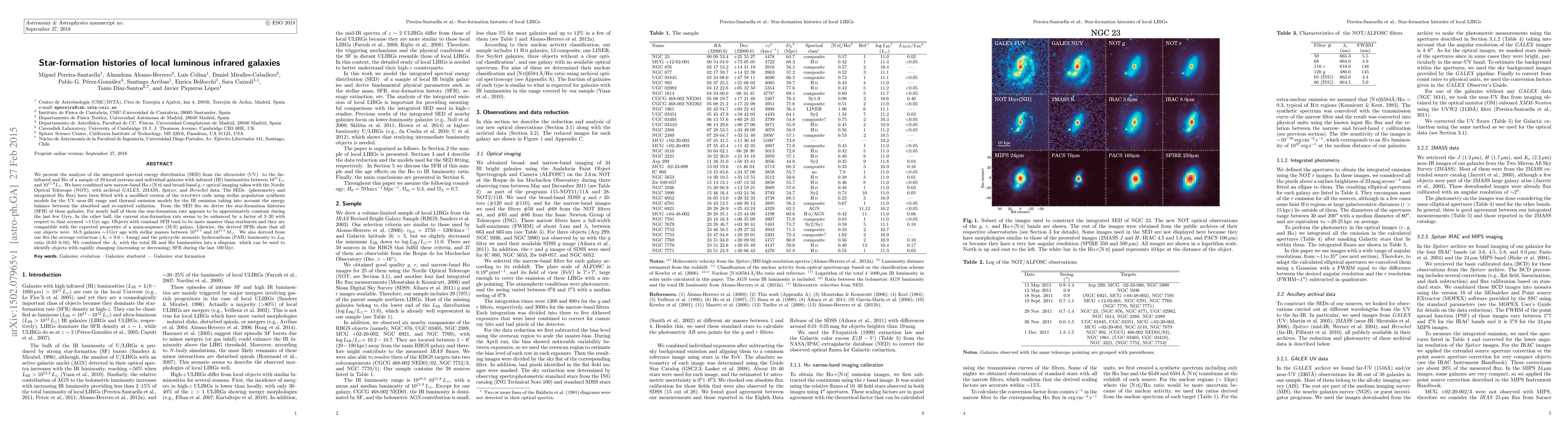 This paper analyzes the star-formation histories of 29 local luminous infrared galaxies using integrated spectral energy distributions and H$\alpha$ flux fits. It finds that nearly half of these galaxies have a constant star-formation rate over the last few Gyrs, while the other half show a significant enhancement in star-formation compared to 1 Gyr ago.