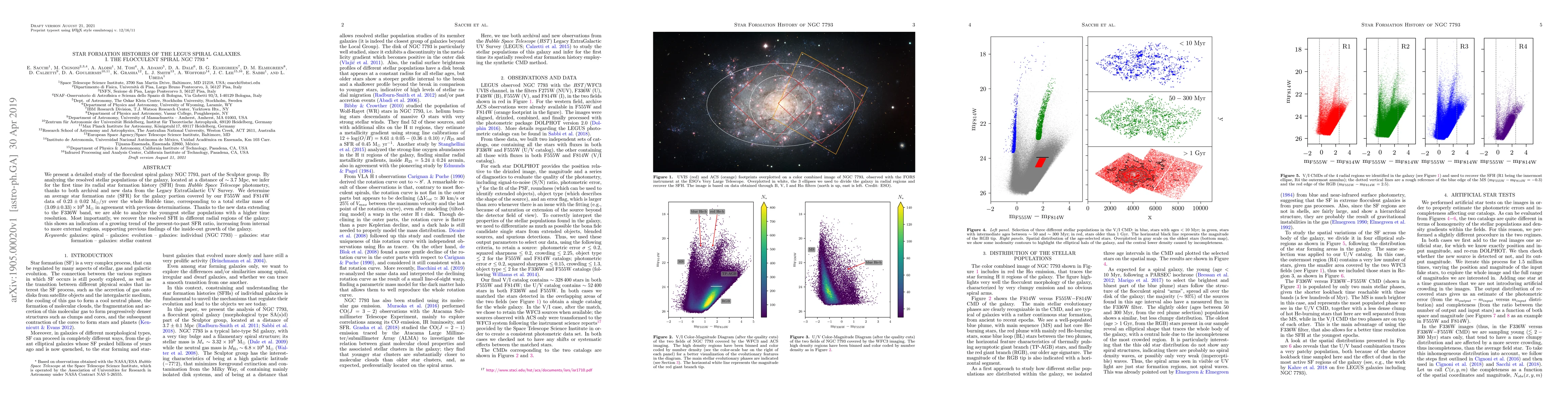 This study presents a detailed analysis of the flocculent spiral galaxy NGC 7793 using Hubble Space Telescope photometry from the Legacy ExtraGalactic UV Survey (LEGUS). The researchers determined the radial star formation history (SFH) by comparing observed color-magnitude diagrams (CMDs) with synthetic models, allowing for high temporal resolution of the youngest stellar populations.