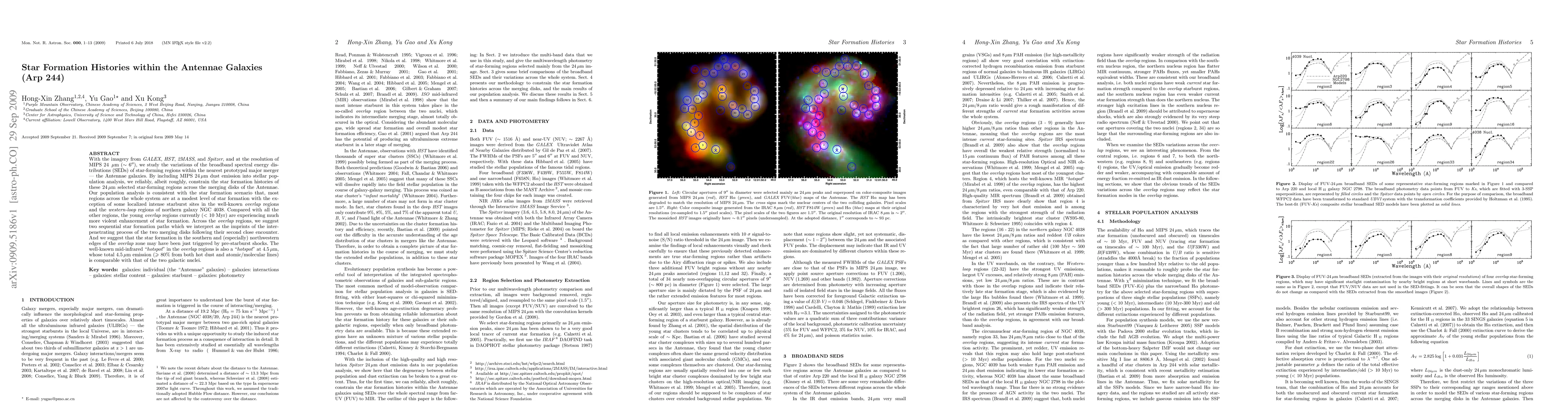 This study uses multi-wavelength imagery to analyze star formation histories in the Antennae Galaxies, revealing modest star formation across most regions with intense localized starbursts in overlap and western-loop regions. The overlap regions show two sequential star formation paths, suggesting the effects of the merging galaxies' second close encounter.