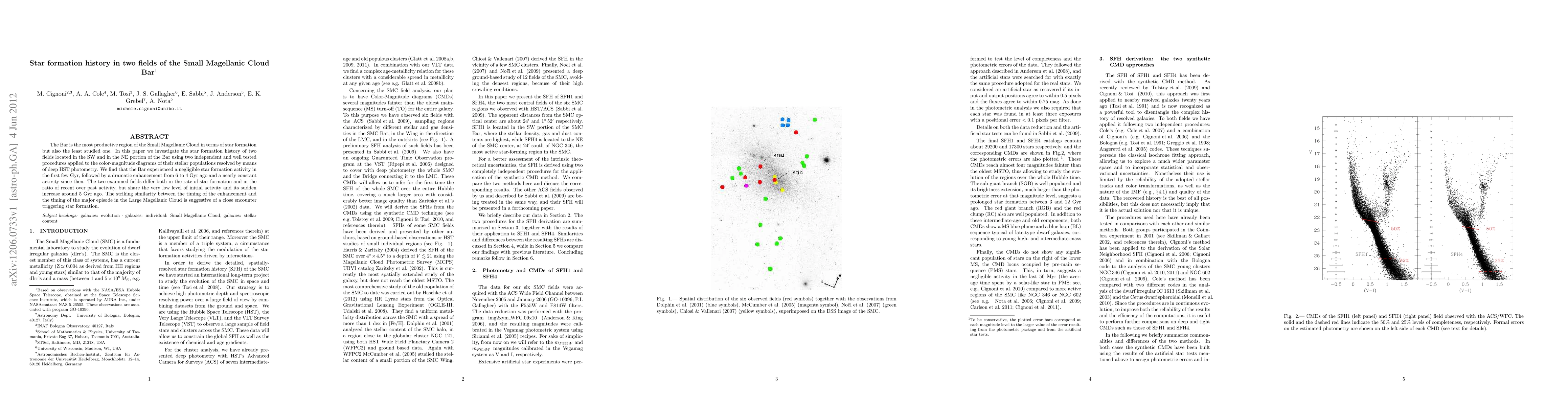 This paper investigates the star formation history in two fields of the Small Magellanic Cloud Bar, revealing negligible activity initially, followed by a dramatic enhancement around 5 Gyr ago, and sustained activity since then. The two fields differ in star formation rates but share a sudden increase in activity, suggesting a common trigger, possibly linked to a close encounter with the Large Magellanic Cloud.