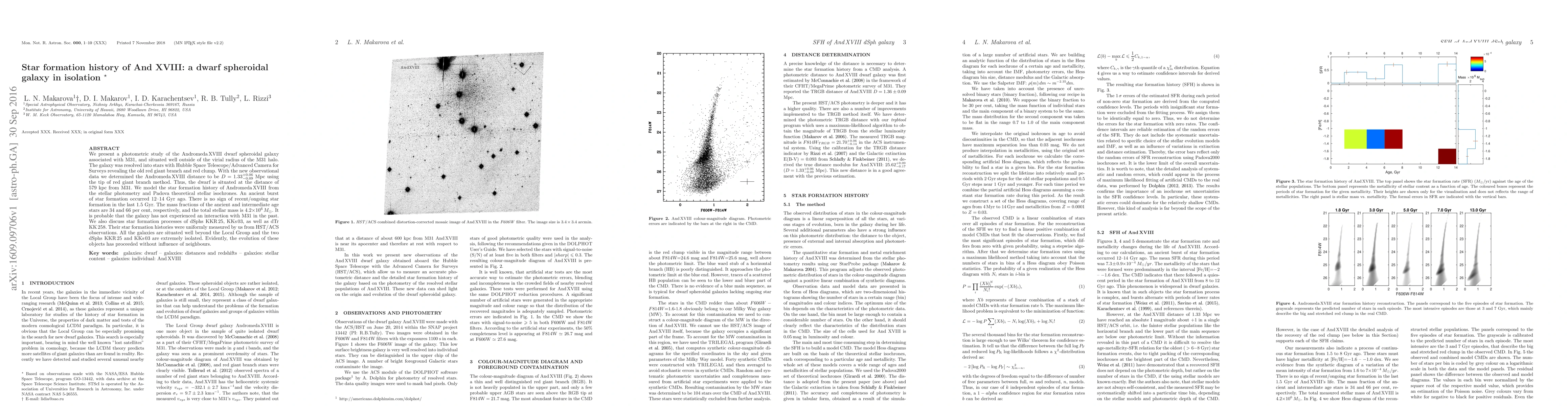This paper investigates the star formation history of the isolated dwarf spheroidal galaxy And XVIII, using Hubble Space Telescope data. It finds an ancient star formation burst 12-14 Gyr ago, with no recent star formation, and suggests the galaxy has not interacted with M31.