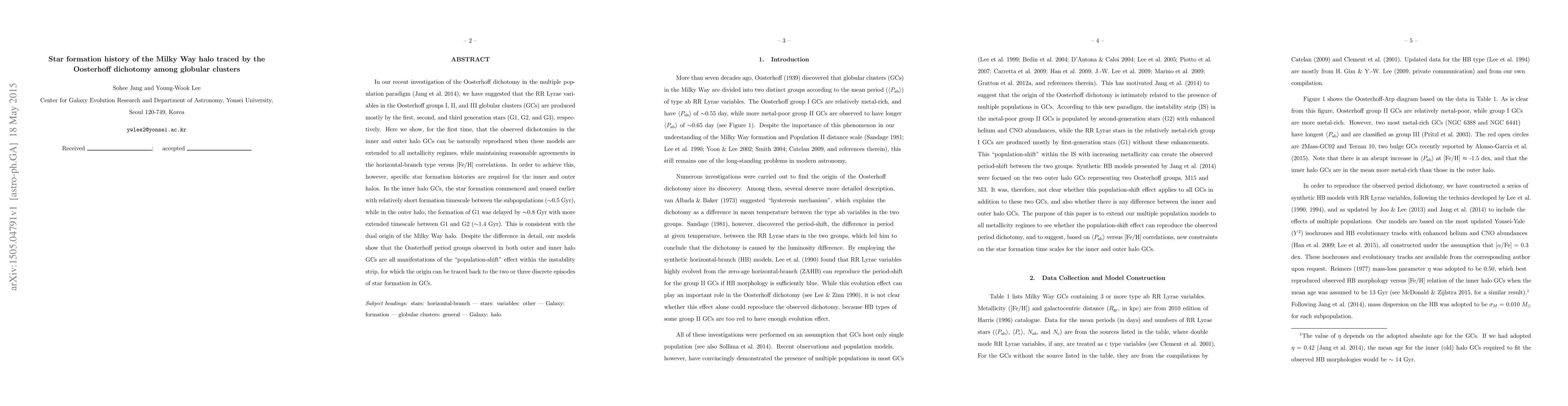 This paper investigates the Milky Way halo's star formation history through the Oosterhoff dichotomy among globular clusters, revealing distinct formation timelines for inner and outer halo GCs. The inner halo experienced a shorter, earlier star formation period, while the outer halo had a delayed and more extended formation timeline, supporting the Milky Way halo's dual origin.