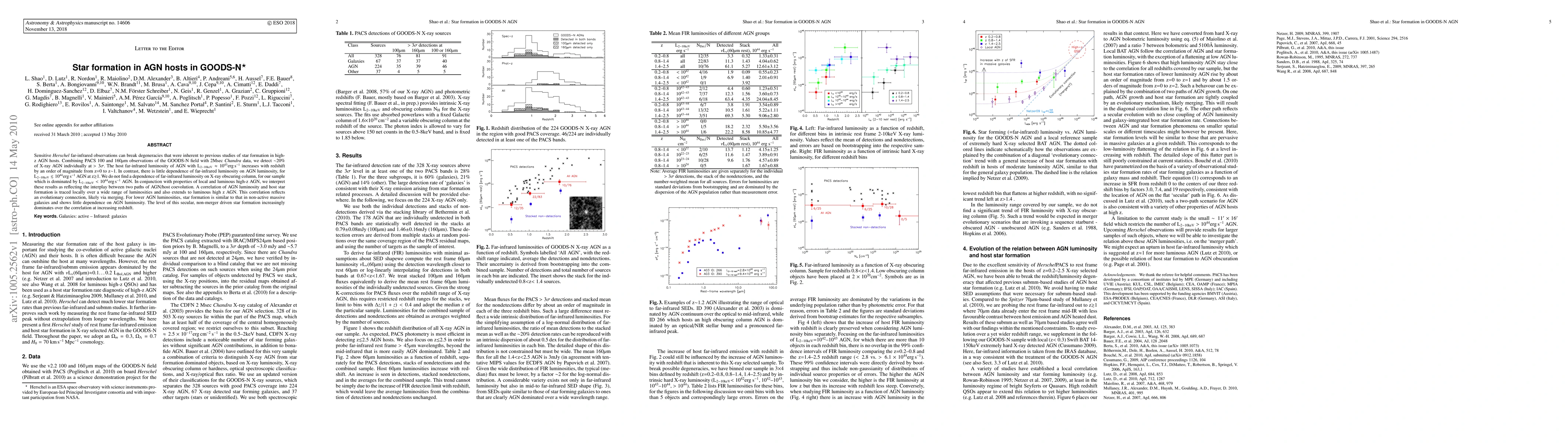 Sensitive Herschel far-infrared observations can break degeneracies that were inherent to previous studies of star formation in high-z AGN hosts. Combining PACS 100 and 160um observations of the GOODS-N field with 2Msec Chandra data, we detect ~20% of X-ray AGN individually at >3sig. The host far-infrared luminosity of AGN with L2-10~10^43erg/s increases with redshift by an order of magnitude from z=0 to z~1. In contrast, there is little dependence of far-infrared luminosity on AGN luminosity, for L2-10<~10^44erg/s AGN at z>~1. We do not find a dependence of far-infrared luminosity on X-ray obscuring column, for our sample which is dominated by L2-10<10^44erg/s AGN. In conjunction with properties of local and luminous high-z AGN, we interpret these results as reflecting the interplay between two paths of AGN/host coevolution. A correlation of AGN luminosity and host star formation is traced locally over a wide range of luminosities and also extends to luminous high z AGN. This correlation reflects an evolutionary connection, likely via merging. For lower AGN luminosities, star formation is similar to that in non-active massive galaxies and shows little dependence on AGN luminosity. The level of this secular, non-merger driven star formation increasingly dominates over the correlation at increasing redshift.