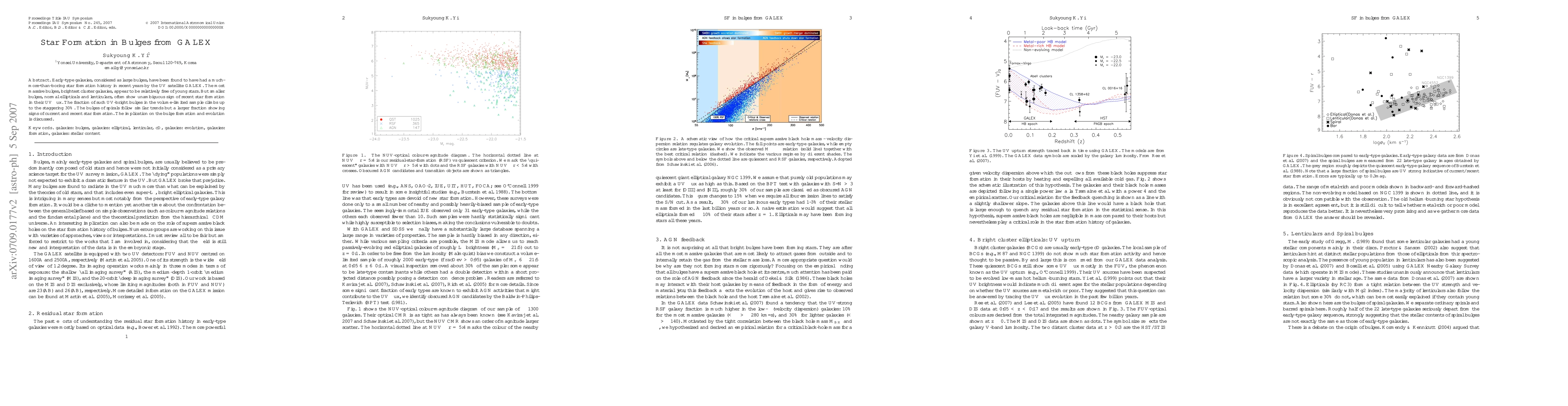 The GALEX satellite has revealed that smaller bulges in early-type galaxies, including ellipticals and lenticulars, frequently exhibit signs of recent star formation, with up to 30% showing UV flux indicative of such activity. This challenges the notion that only massive bulges are devoid of star formation, suggesting significant implications for bulge formation and evolution.