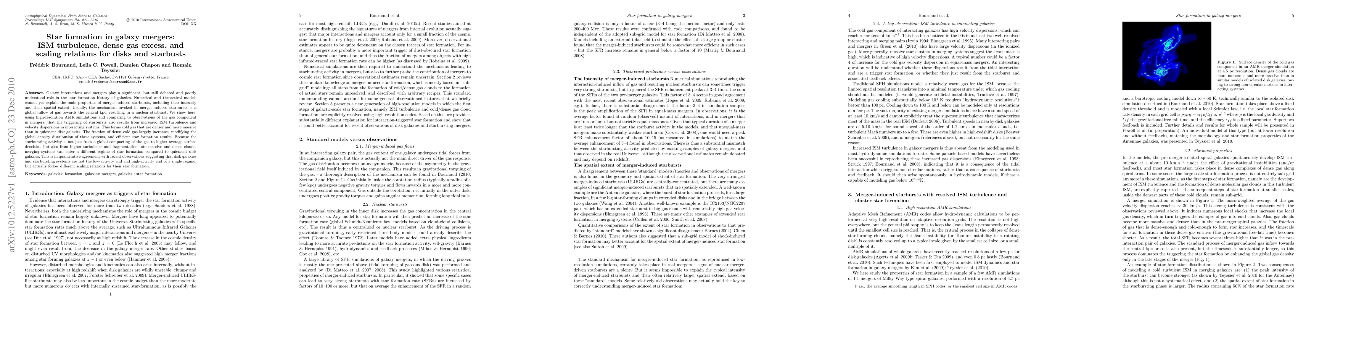 This paper demonstrates that galaxy mergers trigger starbursts through increased ISM turbulence and dense gas formation, rather than solely via global gas inflows. The enhanced turbulence leads to the formation of massive and dense gas clouds, resulting in a distinct star formation regime compared to quiescent disk galaxies, supported by high-resolution simulations and observational data.