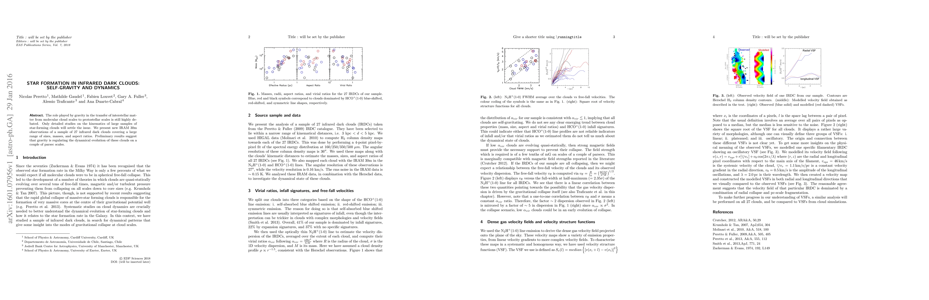 The role played by gravity in the transfer of interstellar matter from molecular cloud scales to protostellar scales is still highly debated. Only detailed studies on the kinematics of large samples of star-forming clouds will settle the issue. We present new IRAM 30m observations of a sample of 27 infrared dark clouds covering a large range of sizes, masses, and aspect ratios. Preliminary results suggest that gravity is regulating the dynamical evolution of these clouds on a couple of parsec scales.