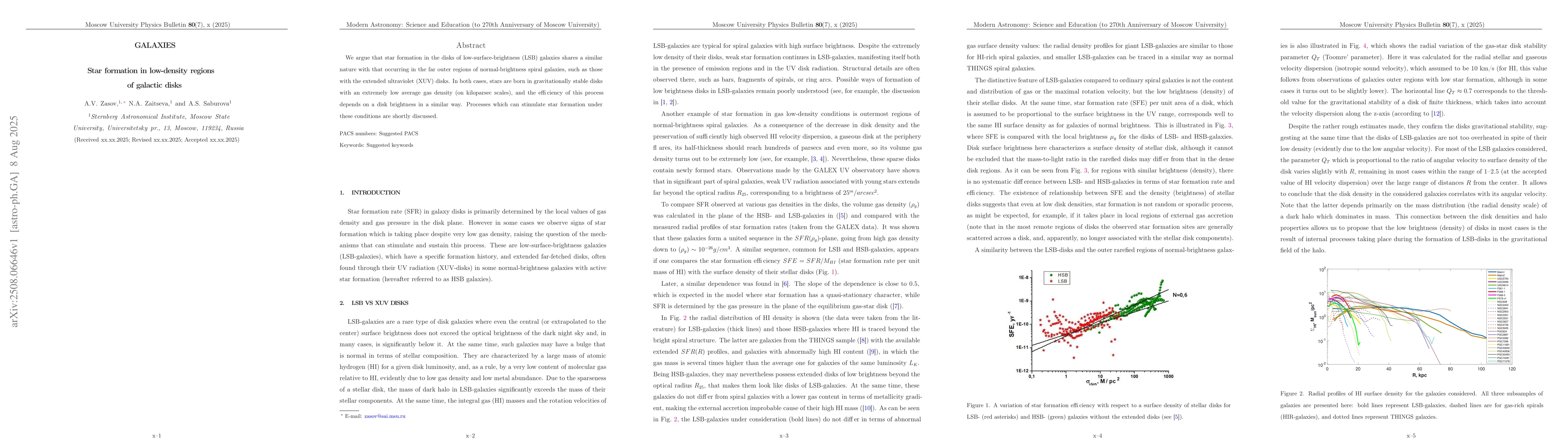 We argue that star formation in the disks of low-surface-brightness (LSB) galaxies shares a similar nature with that occurring in the far outer regions of normal-brightness spiral galaxies, such as those with the extended ultraviolet (XUV) disks. In both cases, stars are born in gravitationally stable disks with an extremely low average gas density (on kiloparsec scales), and the efficiency of this process depends on a disk brightness in a similar way. Processes which can stimulate star formation under these conditions are shortly discussed.