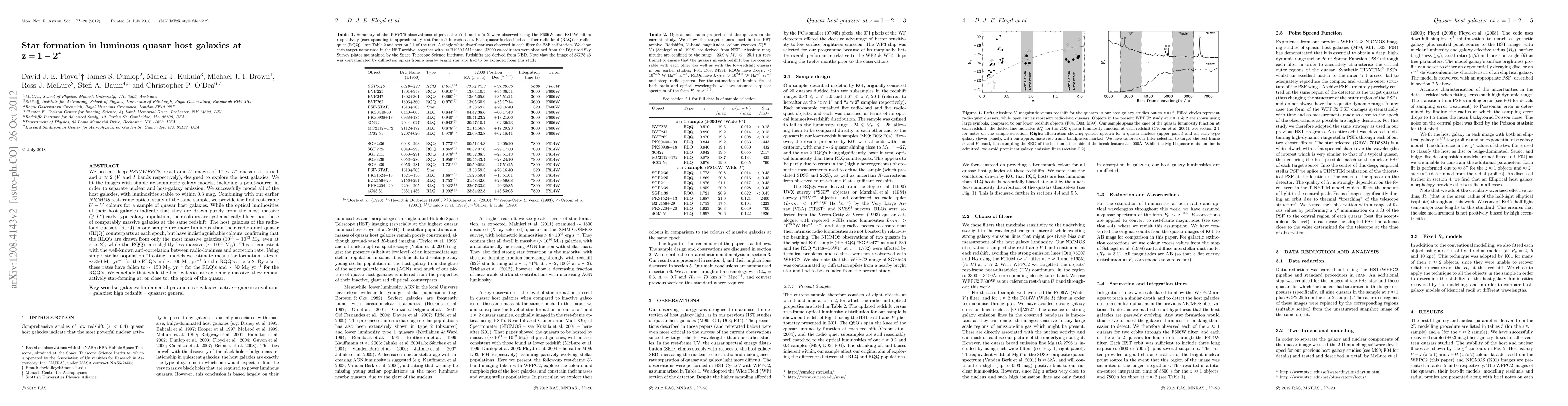 This study uses HST/WFPC2 imaging to analyze the host galaxies of luminous quasars at z=1-2, revealing they are massive early-type galaxies with active star formation rates of ~350 M_sun/yr at z=2, declining to ~150 M_sun/yr by z=1. Radio-loud quasars reside in the most massive galaxies, while radio-quiet quasars are slightly less massive but still actively star-forming.