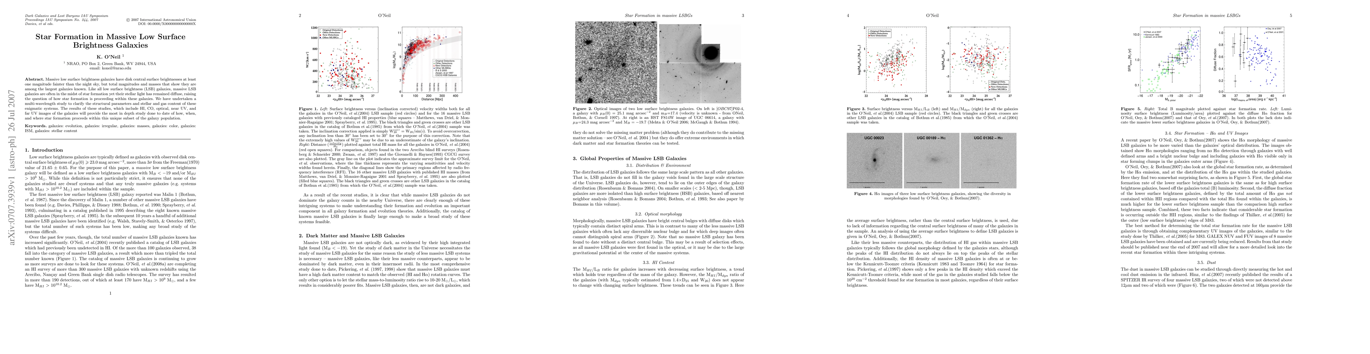 Massive low surface brightness galaxies have disk central surface brightnesses at least one magnitude fainter than the night sky, but total magnitudes and masses that show they are among the largest galaxies known. Like all low surface brightness (LSB) galaxies, massive LSB galaxies are often in the midst of star formation yet their stellar light has remained diffuse, raising the question of how star formation is proceeding within these galaxies. We have undertaken a multi-wavelength study to clarify the structural parameters and stellar and gas content of these enigmatic systems. The results of these studies, which include HI, CO, optical, near UV, and far UV images of the galaxies will provide the most in depth study done to date of how, when, and where star formation proceeds within this unique subset of the galaxy population.