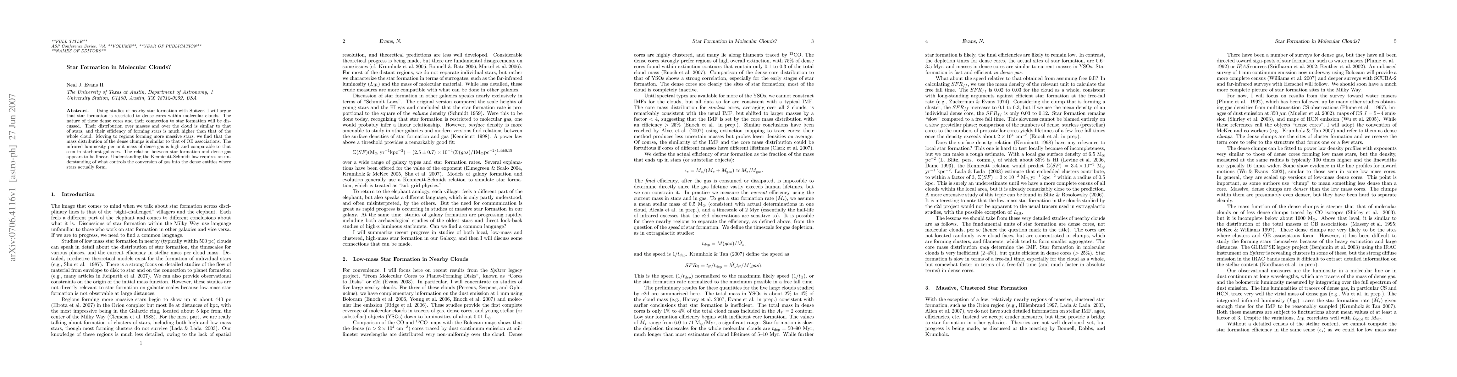This paper uses Spitzer observations to demonstrate that star formation predominantly occurs in dense cores within molecular clouds, emphasizing their high star formation efficiency and similarity in mass distribution to OB associations. The study highlights a linear relationship between star formation and dense gas, stressing the importance of understanding the mechanisms that convert gas into these dense, star-forming regions.