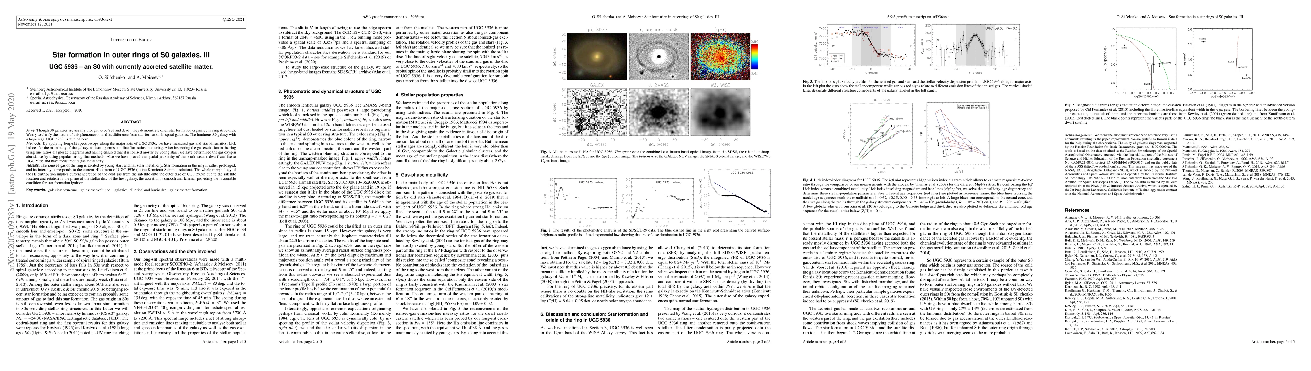 This paper investigates star formation in the outer ring of the S0 galaxy UGC 5936, revealing ongoing star formation driven by accretion of cold gas from a nearby satellite. Spectroscopic analysis shows that the ring's ionized gas is excited by young stars and has solar metallicity, indicating a prolonged star formation process linked to the current HI content.
