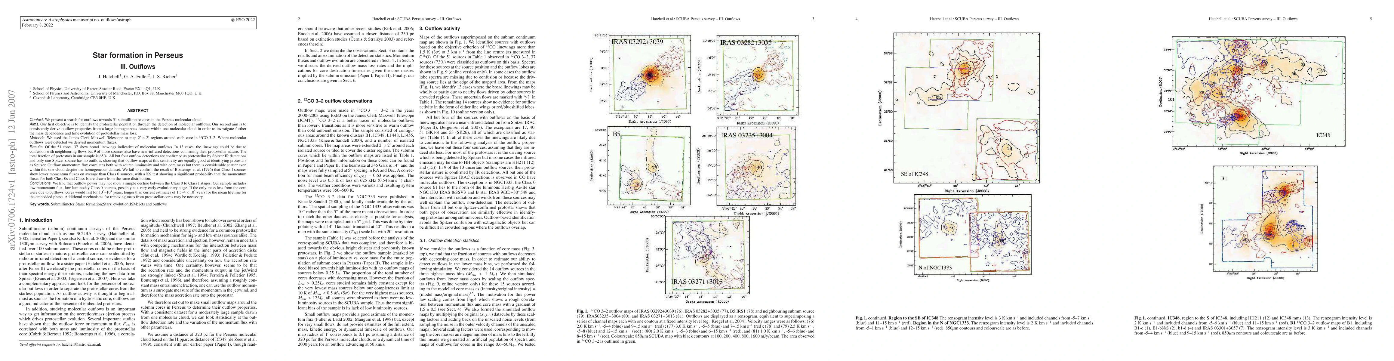 We present a search for outflows towards 51 submillimetre cores in Perseus. With consistently derived outflow properties from a large homogeneous dataset within one molecular cloud we can investigate further the mass dependence and time evolution of protostellar mass loss. Of the 51 cores, 37 show broad linewings indicative of molecular outflows. In 13 cases, the linewings could be due to confusion with neighbouring flows but 9 of those sources also have near-infrared detections confirming their protostellar nature. The total fraction of protostars in our sample is 65%. All but four outflow detections are confirmed as protostellar by Spitzer IR detections and only one Spitzer source has no outflow, showing that outflow maps at this sensitivity are equally good at identifying protostars as Spitzer. Outflow momentum flux correlates both with source luminosity and with core mass but there is considerable scatter even within this one cloud despite the homogeneous dataset. We fail to confirm the result of Bontemps et al. (1996) that Class I sources show lower momentum fluxes on average than Class 0 sources, with a KS test showing a significant probability that the momentum fluxes for both Class 0s and Class Is are drawn from the same distribution. We find that outflow power may not show a simple decline between the Class 0 to Class I stages. Our sample includes low momentum flux, low-luminosity Class 0 sources, possibly at a very early evolutionary stage. If the only mass loss from the core were due to outflows, cores would last for 10^5-10^8 years, longer than current estimates of 1.5-4 x 10^5 years for the mean lifetime for the embedded phase. Additional mechanisms for removing mass from protostellar cores may be necessary.