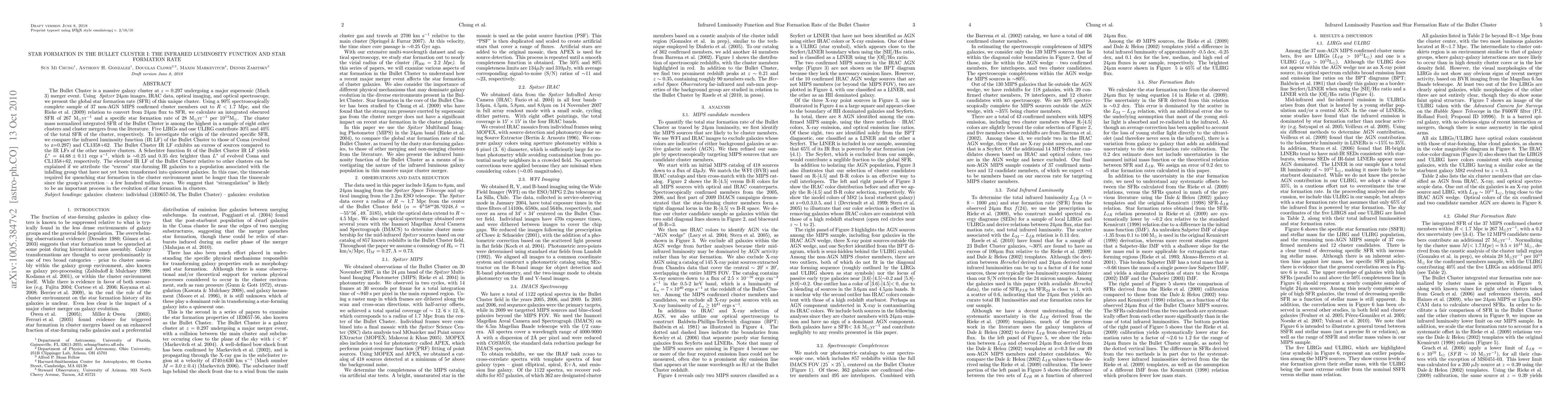 This paper investigates star formation in the Bullet Cluster, a merging galaxy cluster, finding an unusually high star formation rate (267 Msolar/yr) and specific star formation rate (28 Msolar/yr per 10^14 Msolar). The elevated star formation is attributed to an excess of infrared luminosity sources, suggesting that infalling groups have not yet been quenched, indicating "strangulation" as a significant star formation process in clusters.