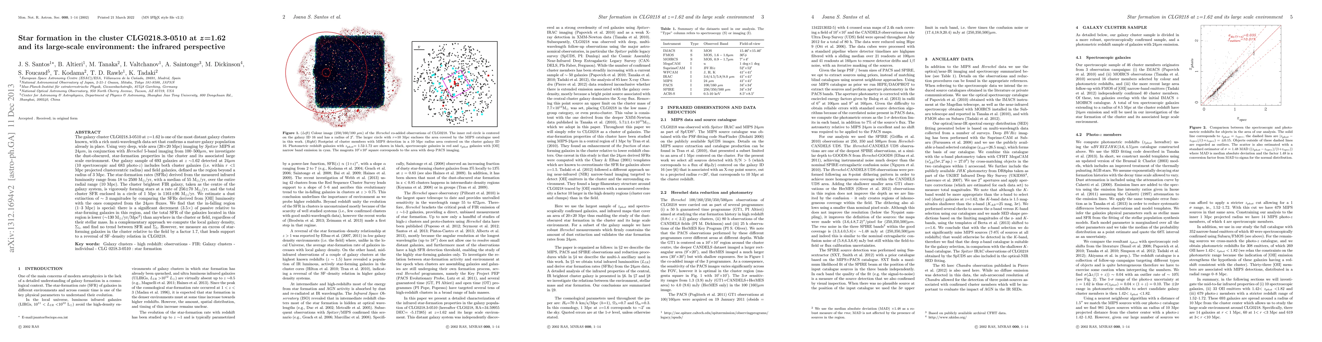 This study uses Spitzer and Herschel infrared data to examine star formation in the distant galaxy cluster CLG0218.3-0510 at z=1.62, finding a median star-formation rate of 55 Ms/yr. The cluster shows a significant decrement in passive galaxies relative to star-forming ones in the in-falling region, indicating a reversal of the star-formation density relation.