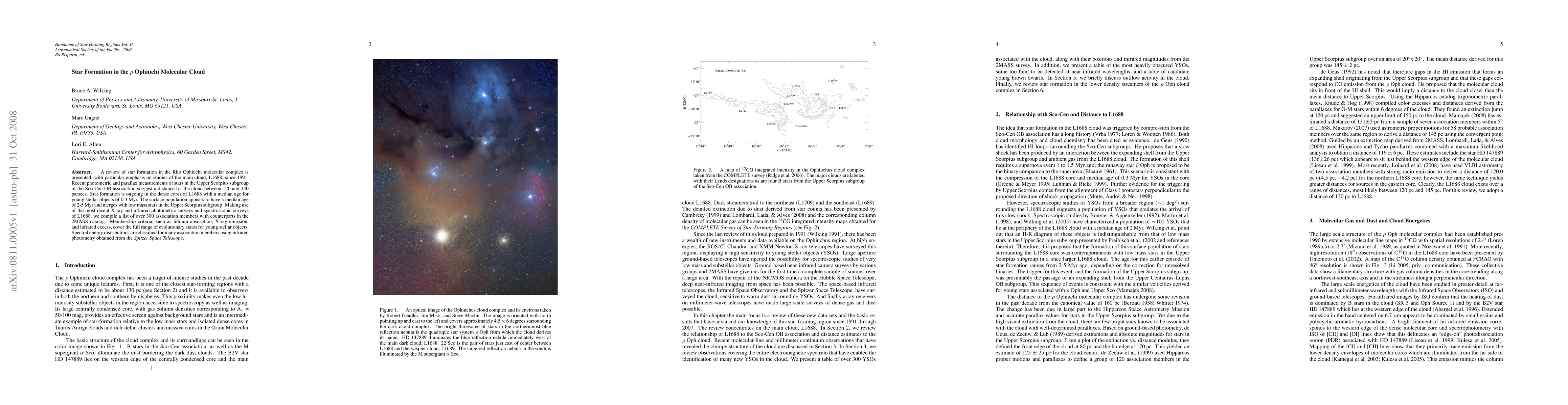 This paper reviews star formation in the Rho Ophiuchi molecular cloud, focusing on L1688, and finds ongoing formation in its dense cores with a median age of 0.3 Myr. It compiles over 300 association members, using X-ray, infrared, and spectroscopic data, and classifies their spectral energy distributions.