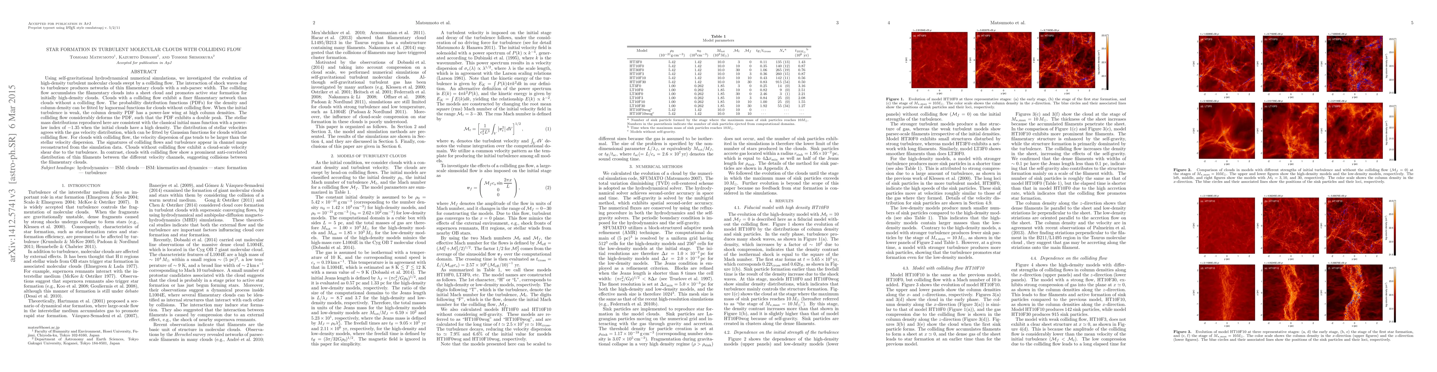 This study uses numerical simulations to explore star formation in turbulent molecular clouds influenced by colliding flows, revealing that such flows promote star formation and create a finer filamentary network. The colliding flow alters the density and column density probability distributions, leading to a double peak in the latter, while the stellar mass distribution aligns with the classical initial mass function.