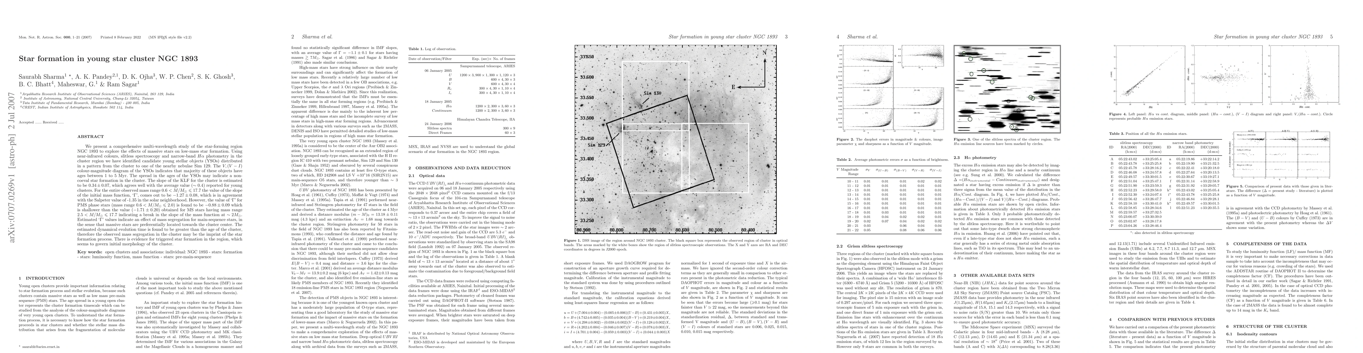 The paper presents a detailed analysis of the star formation in NGC 1893, employing multi-wavelength data to study the effects of massive stars on low-mass star formation and deriving the initial mass function and its slope for the cluster.
