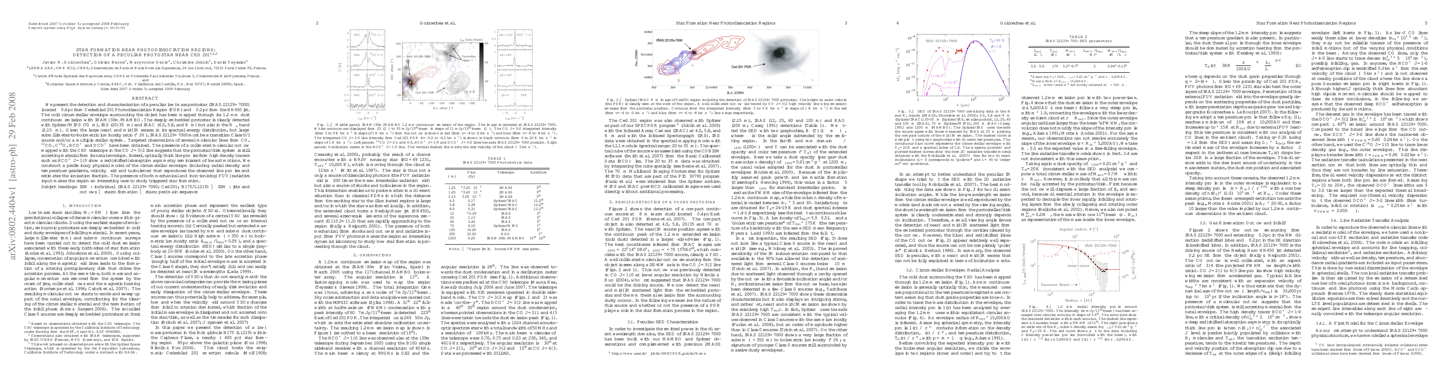 We present the detection and characterization of a peculiar low-mass protostar (IRAS 22129+7000) located ~0.4 pc from Ced 201 Photodissociation Region (PDR) and ~0.2 pc from the HH450 jet. The cold circumstellar envelope surrounding the object has been mapped through its 1.2 mm dust continuum emission with IRAM-30m/MAMBO. The deeply embedded protostar is clearly detected with Spitzer/MIPS (70 um), IRS (20-35 um) and IRAC (4.5, 5.8, and 8 um) but also in the K_s band (2.15 um). Given the large "near- and mid-IR excess" in its spectral energy distribution, but large submillimeter-to-bolometric luminosity ratio (~2%), IRAS 22129+7000 must be a transition Class 0/I source and/or a multiple stellar system. Targeted observations of several molecular lines from CO, 13CO, C18O, HCO+ and DCO+ have been obtained. The presence of a collimated molecular outflow mapped with the CSO telescope in the CO J=3-2 line suggests that the protostar/disk system is still accreting material from its natal envelope. Indeed, optically thick line profiles from high density tracers such as HCO+ J=1-0 show a red-shifted-absorption asymmetry reminiscent of inward motions. We construct a preliminary physical model of the circumstellar envelope (including radial density and temperature gradients, velocity field and turbulence) that reproduces the observed line profiles and estimates the ionization fraction. The presence of both mechanical and (non-ionizing) FUV-radiative input makes the region an interesting case to study triggered star formation.