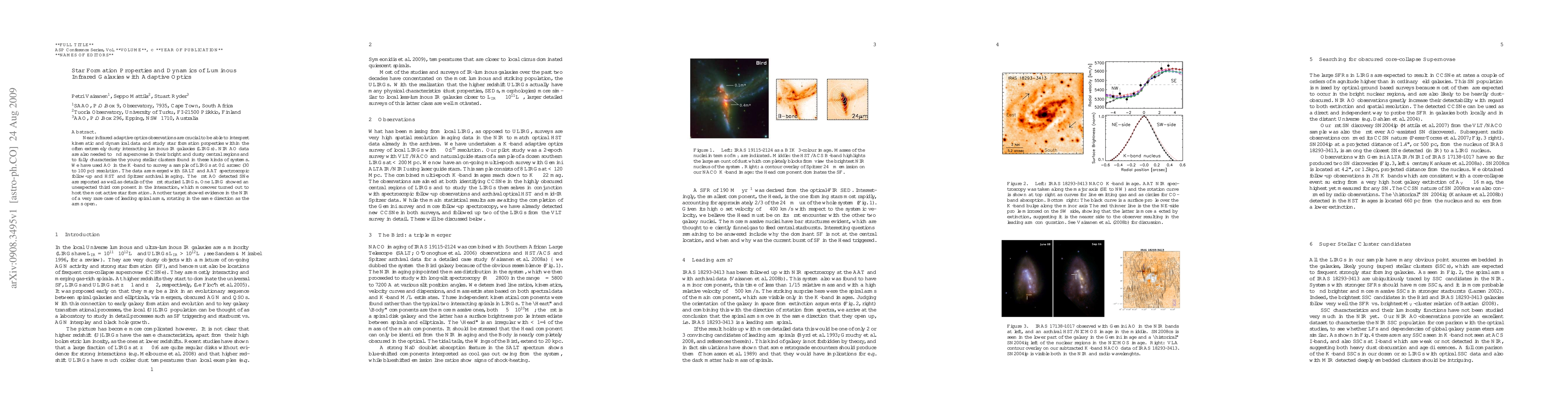 This study uses near-infrared adaptive optics to investigate the star formation properties and dynamics of luminous infrared galaxies (LIRGs), revealing unexpected third components and rare leading spiral arms. The findings include the first adaptive optics-detected supernovae and detailed characterization of young stellar clusters within these dusty systems.