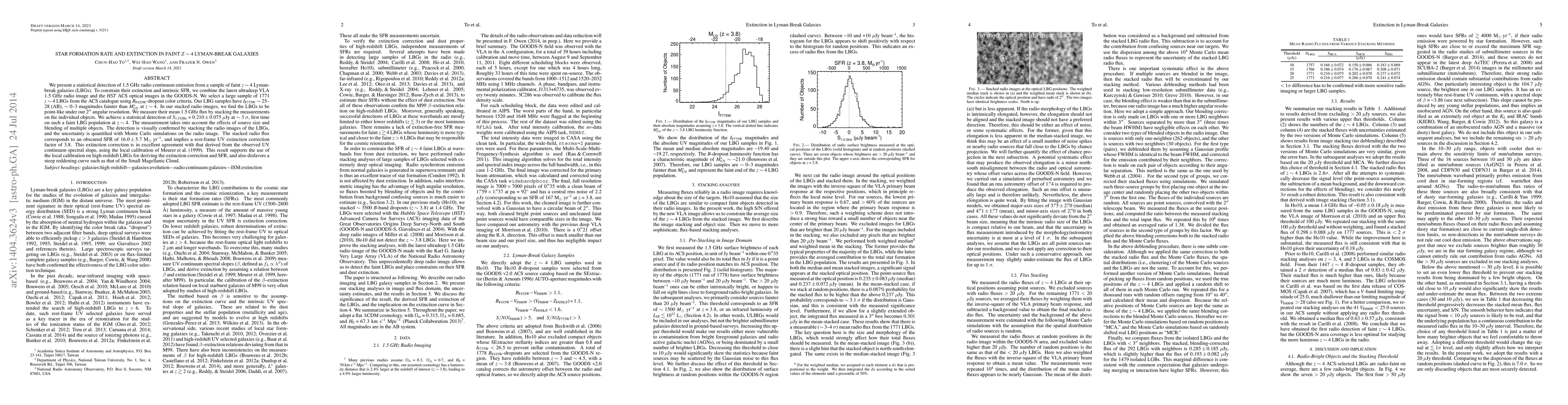 We present a statistical detection of 1.5 GHz radio continuum emission from a sample of faint z~4 Lyman-break galaxies (LBGs). LBGs are key tracers of the high-redshift star formation history and important sources of UV photons that ionized the intergalactic medium in the early universe. In order to better constrain the extinction and intrinsic star formation rate (SFR) of high-redshift LBGs, we combine the latest ultradeep Karl G. Jansky Very Large Array 1.5 GHz radio image and the Hubble Space Telescope Advance Camera for Surveys (ACS) optical images in the Great Observatories Origins Deep Survey-North. We select a large sample of 1771 z~4 LBGs from the ACS catalogue using $\bband$-dropout color criteria. Our LBG samples have $\iband$~25-28 (AB), ~0-3 magnitudes fainter than M*_UV at z~4. In our stacked radio images, we find the LBGs to be point-like under our 2" angular resolution. We measure their mean 1.5 GHz flux by stacking the measurements on the individual objects. We achieve a statistical detection of $S_{1.5GHz}$=0.210+-0.075 uJy at ~3 sigma, first time on such a faint LBG population at z~4. The measurement takes into account the effects of source size and blending of multiple objects. The detection is visually confirmed by stacking the radio images of the LBGs, and the uncertainty is quantified with Monte Carlo simulations on the radio image. The stacked radio flux corresponds to an intrinsic SFR of 16.0+-5.7 M/yr, which is 2.8X the SFR derived from the rest-frame UV continuum luminosity. This factor of 2.8 is in excellent agreement with the extinction correction derived from the observed UV continuum spectral slope, using the local calibration of meurer99. This result supports the use of the local calibration on high-redshift LBGs for deriving the extinction correction and SFR, and also disfavors a steep reddening curve such as that of the Small Magellanic Cloud.