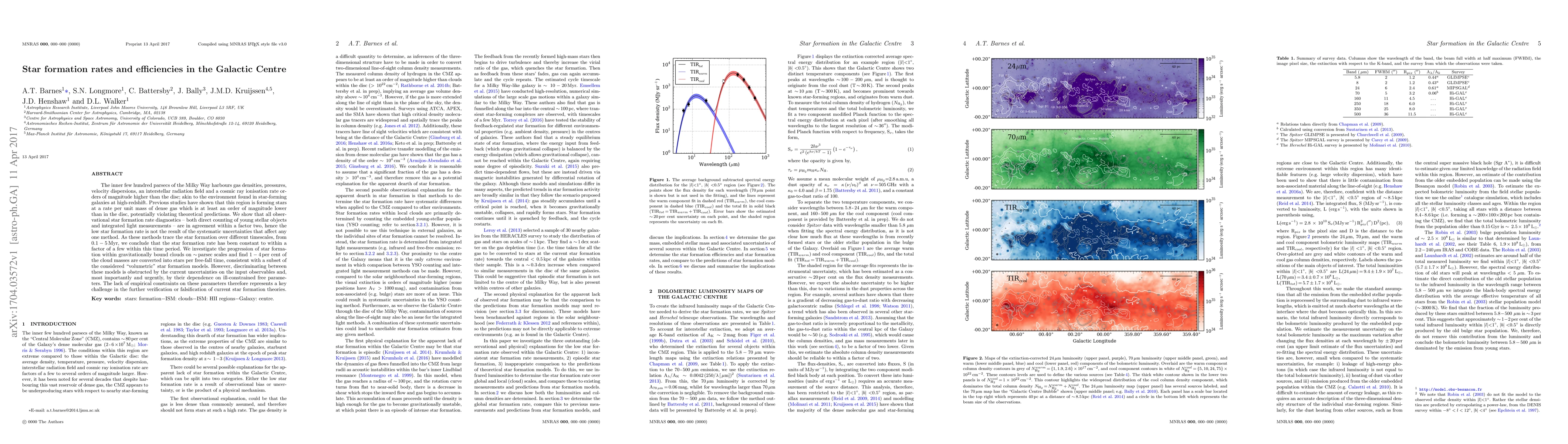 This paper investigates star formation rates and efficiencies in the Galactic Centre, finding that despite high environmental pressures, the star formation rate per unit mass of dense gas is significantly lower than in the disc, yet consistent over $0.1 - 5$ Myr. The study highlights the challenge of verifying current star formation models due to uncertainties in input observables and ill-defined free parameters.